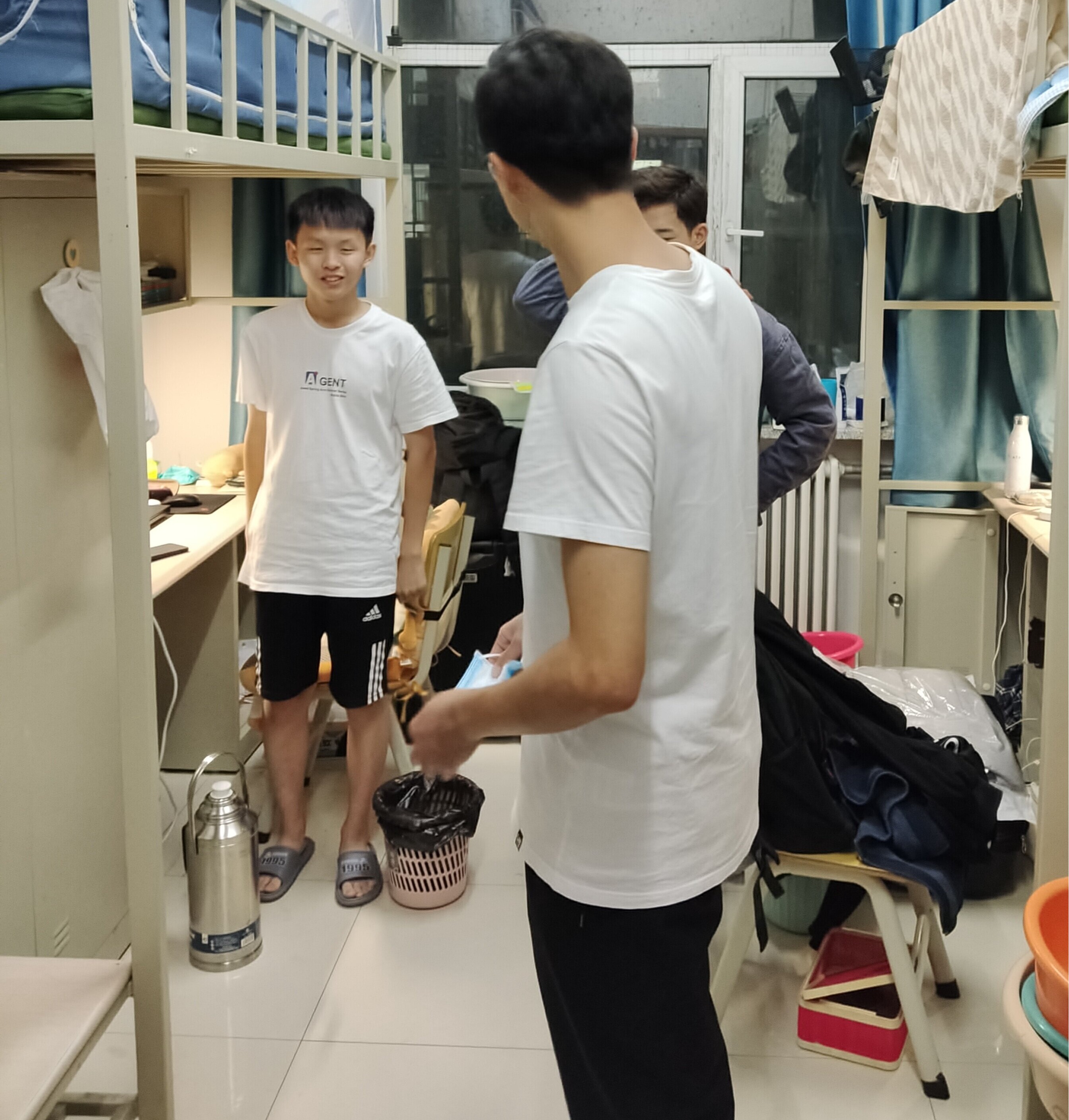 走访过程中,三位辅导员老师对寝室卫生和用电安全做了仔细检查,提醒同学们杜绝使用违规电器、保证寝室用电安全,同时强调在常态化防控期间,各位同学要做好个人防护,出入寝室、教学楼戴好口罩,定期对宿舍进行消毒通风。孙鹏博老师和包健伦老师在寝室中与学生进行亲切交谈,询问同学们在生活中遇到的问题,了解学习方面存在的困难,并向大家传达学院领导和老师对同学们的关心和鼓励。在毕业生宿舍,马姗姗老师详细询问了考研学生复习应考的进度和状态,勉励考研学生在冲刺阶段要树立充足信心,保持良好心态,劳逸结合,以积极的态度迎接考试,取得满意成绩。