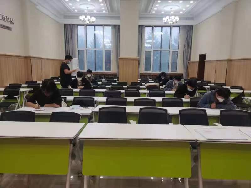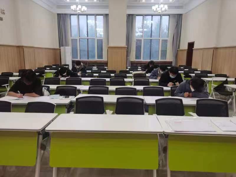 2019级本科生辅导员马姗姗、博士兼职辅导员史博日来到模拟考场现场,向同学们解读模拟考试要求后,考试正式开始。为了让考研的同学们更好的了解和体验考试,熟悉题型结构和考场氛围,本次模拟考试全程安排监考人员,考试时间、试卷和答题卡样式、答题填涂规则等均严格按照研究生考试要求进行,旨在为同学们提供了一个自我检测的机会,让同学们更全面地了解到自己在学习过程中的优势与不足,同学们在拿到试卷后迅速进入答题状态,并以此次模拟考试为契机,找出差距和不足。