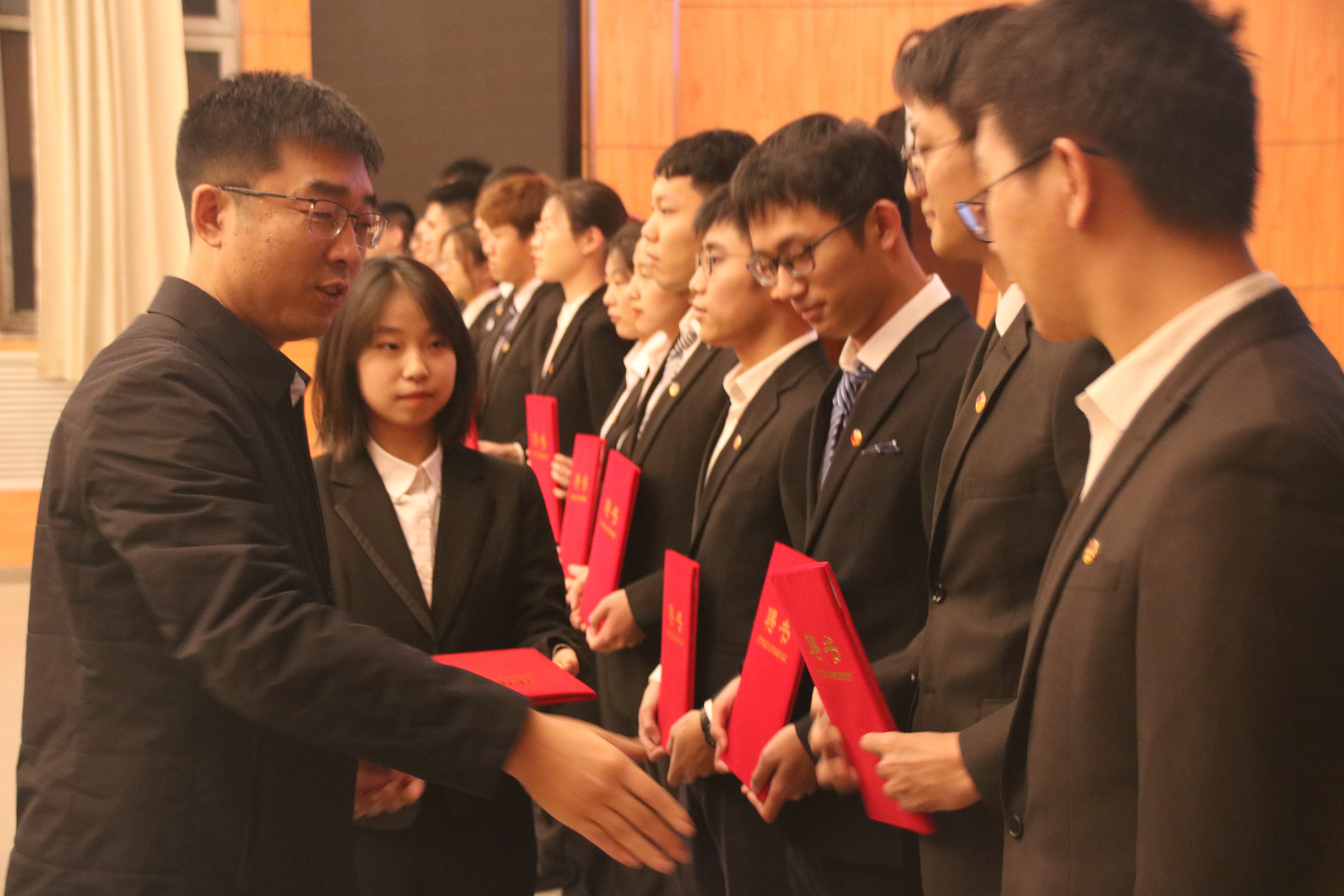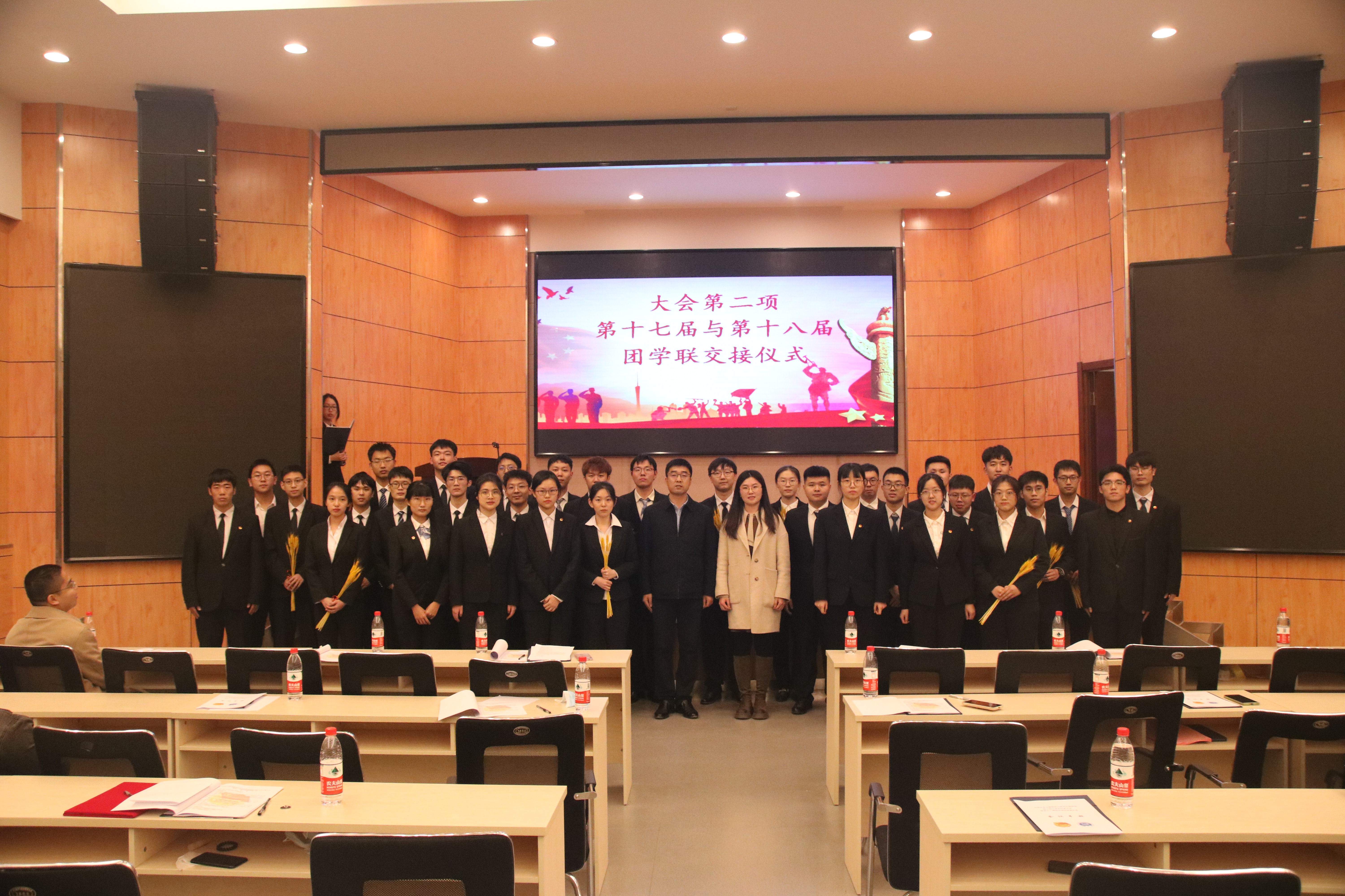 院党委副书记兼副院长周伟老师为第十七届团学组织主要学生干部颁发了任职证书并合影留念。颁发仪式结束后,郝毅同学宣读了第十八届团学组织主要学生干部候选人名单,候选人们按照竞选次序依次上台演讲,他们分别从个人履历、工作经历、职位认知以及未来展望四个方面发表了激情澎湃的演讲,现场气氛热烈,赢得了阵阵掌声。