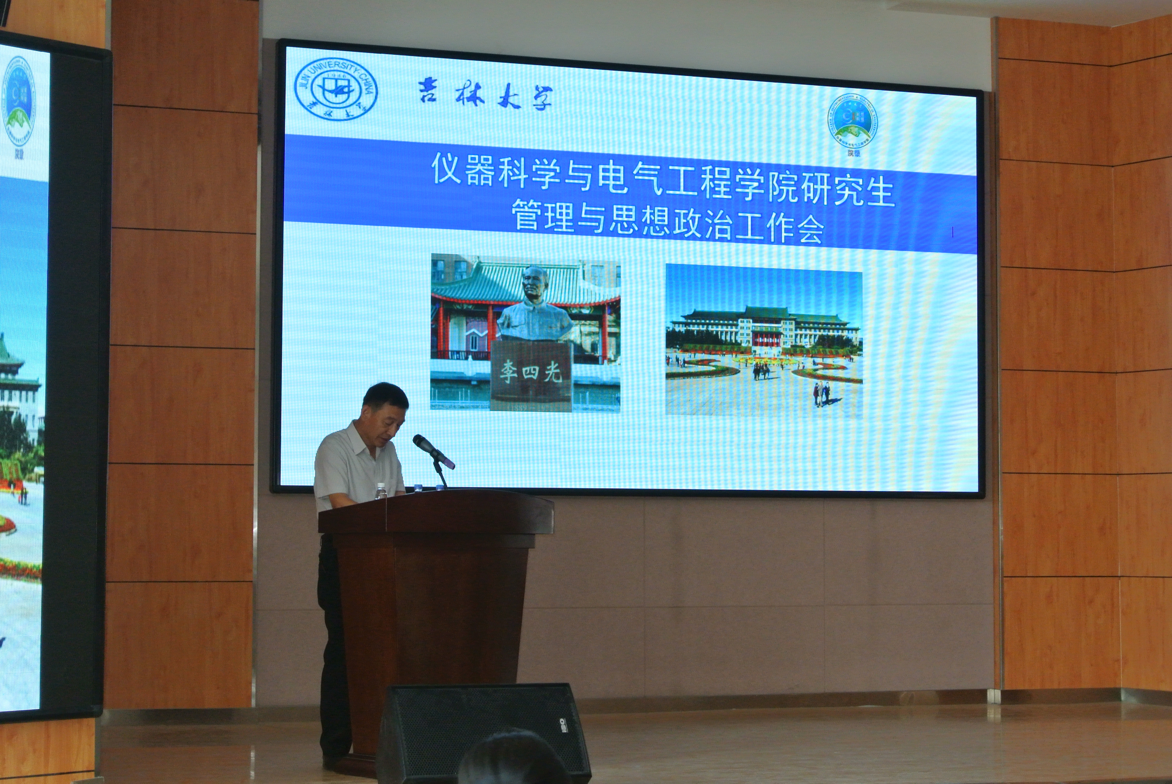 在图书馆四楼报告召开研究生管理与思想政治工作会议,全体研究生导师和全体研究生参加了会议,会议由副院长王言章主持。
