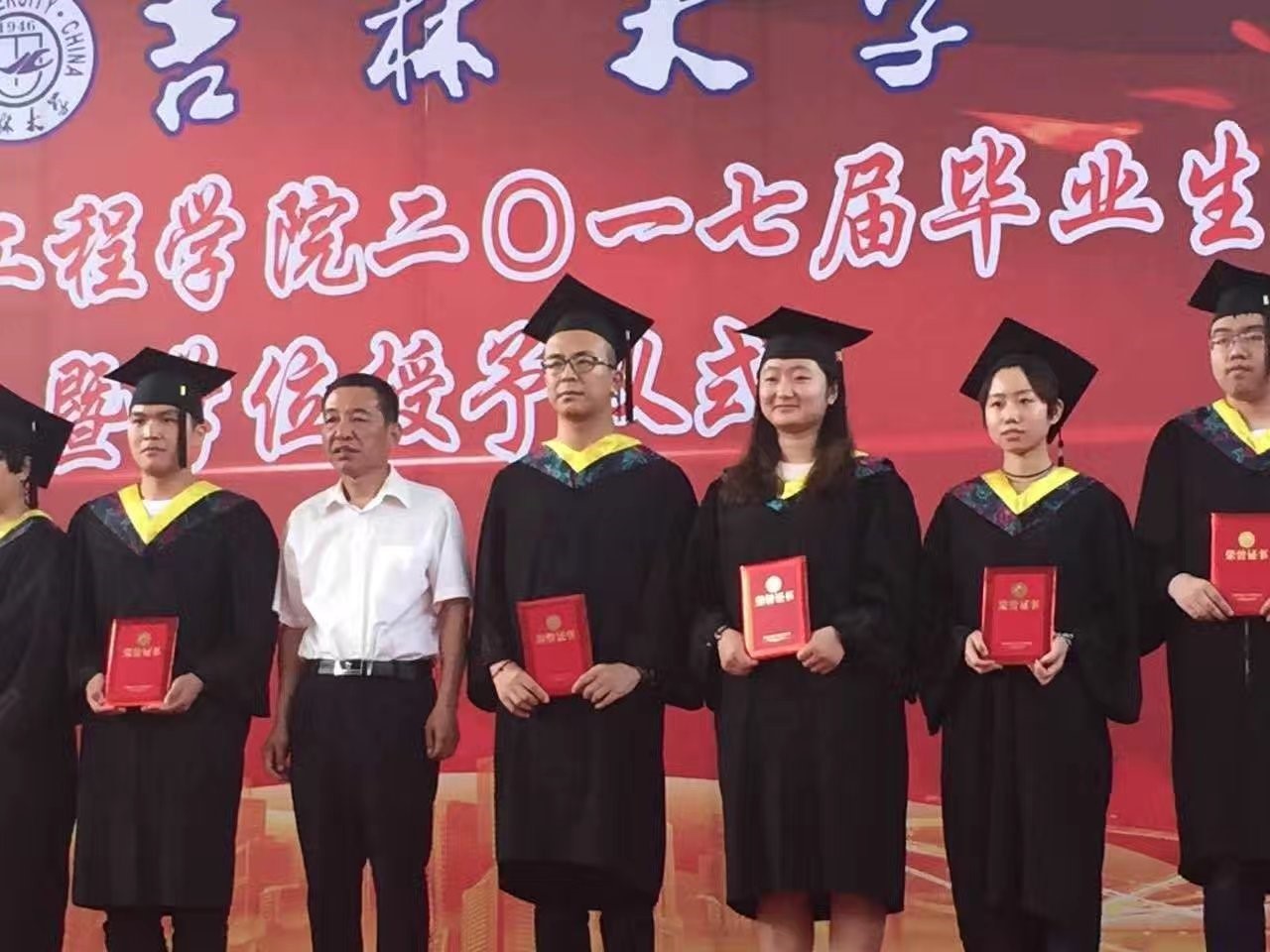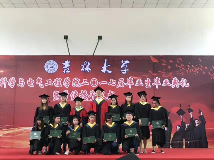 2017届博士与硕士毕业研究生名单,随后,刘长胜副院长宣读了2017届本科毕业生名单。院学位评定委员会主席林君教授与院长嵇艳鞠教授一起为所有2017届毕业生授予学位。接下来,院党委书记王爱民老师宣读了2017届校、院优秀毕业生名单,并为优秀毕业生颁发了获奖证书、合影留念。院教学委员会主任宣读了优秀毕业论文名单,并分别与测控系主任林婷婷教授、电气系副主任刘卫平教授为获得优秀毕业论文的同学颁发证书并合影留念。