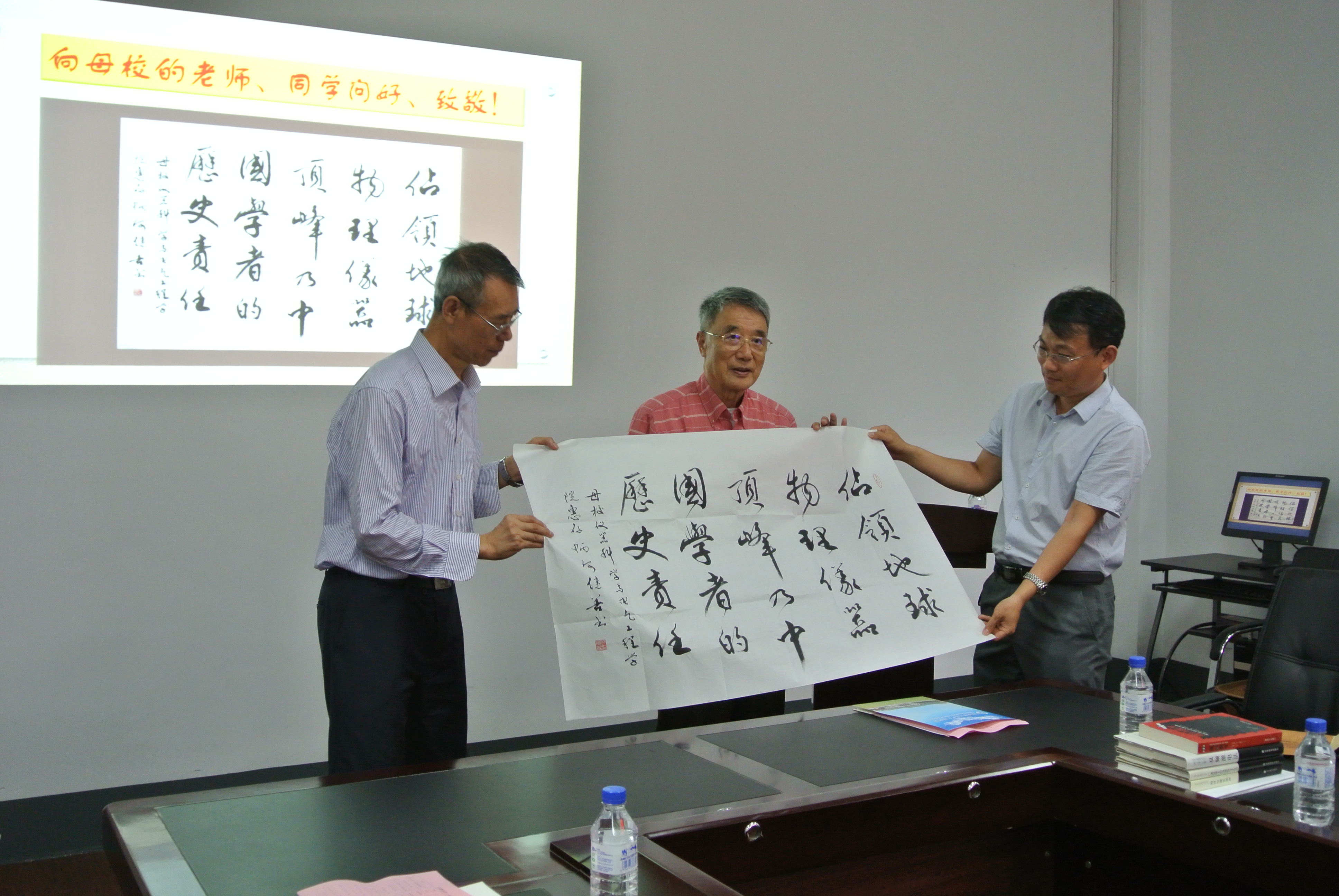 建校七十周年,何继善院士分别为仪电学院和地探学院题词“占领地球物理仪器顶峰乃中国学者的历史责任”、“地球物理的未来一定在中国”,并向母校赠送了《双频激电法》、《广域电磁法和伪随机信号电法》、《海洋电磁法原理》等系列学术文集,以此来表达对母校的感恩以及对母校师生的殷殷期望。