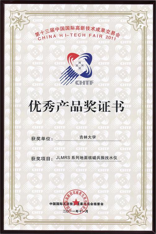 国家地球物理探测仪器工程技术研究中心研发的“JLMRS系列地面核磁共振找水仪”获得优秀产品奖,仅有11所高校推荐的项目获此殊荣。
