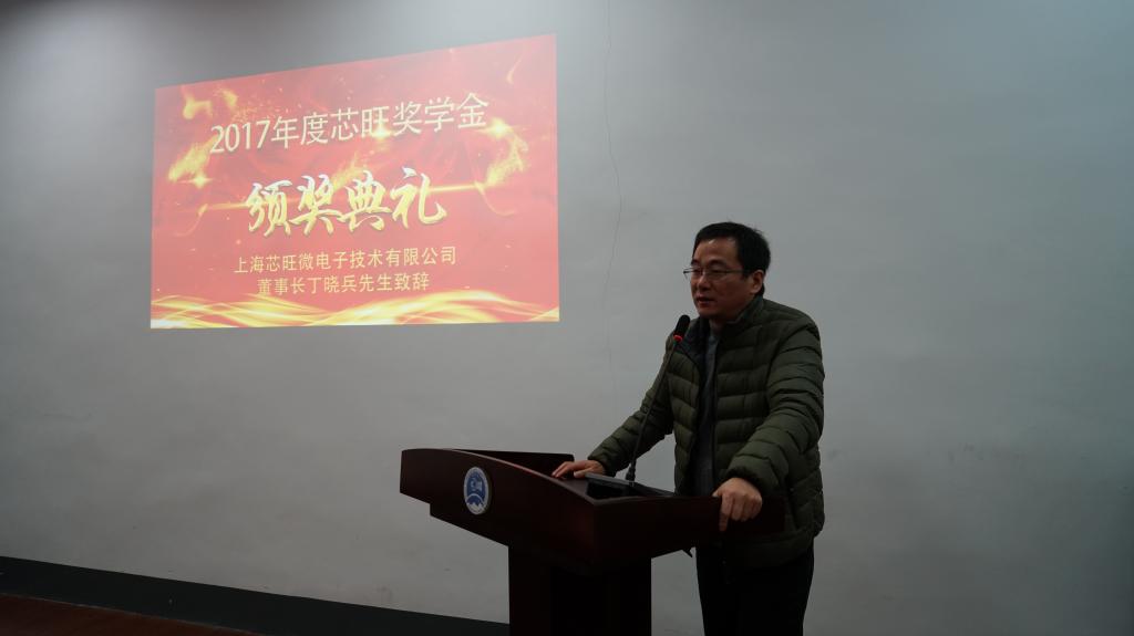 上午8:30,在葛晓野副院长的宣布下颁奖典礼正式开始。首先嵇院长为捐赠企业上海芯旺微电子技术有限公司颁发捐赠证书,随后刘长胜副院长宣读《关于颁发2017年度“芯旺奖学金”的决定》,此次获奖的19名学生为仪电学院2015级本科生,其中一等奖3名、二等奖3名、三等奖13名。《决定》宣读完毕后颁奖仪式正式开始,王言章教授、刘长胜教授为获得三等奖的同学颁奖,朱少华先生和王爱民教授为获得二等奖的同学颁奖,丁董事长和嵇院长为获得一等奖的同学颁奖。颁奖仪式结束后,获奖学生代表、成人网址