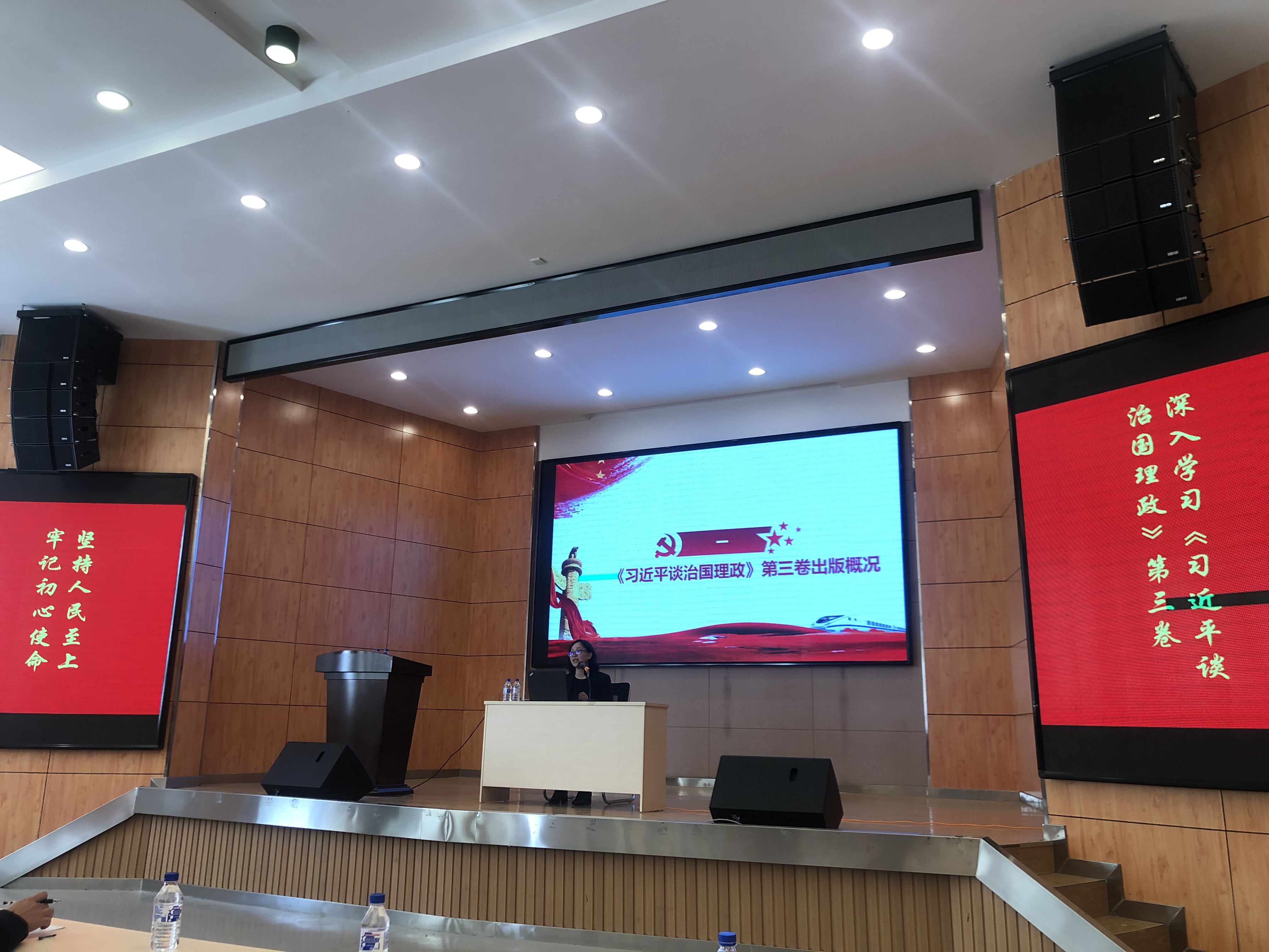 报告会上,石瑛教授从“《习近平谈治国理政》第三卷出版概况”、“为什么学”、“学什么”及“怎样学”四方面展开分析。通过生动的讲解,让同志们更直观的感受中国在中国共产党的领导下,全国各族人民同心同德,艰苦奋斗,从大国变成强国的伟大成就。