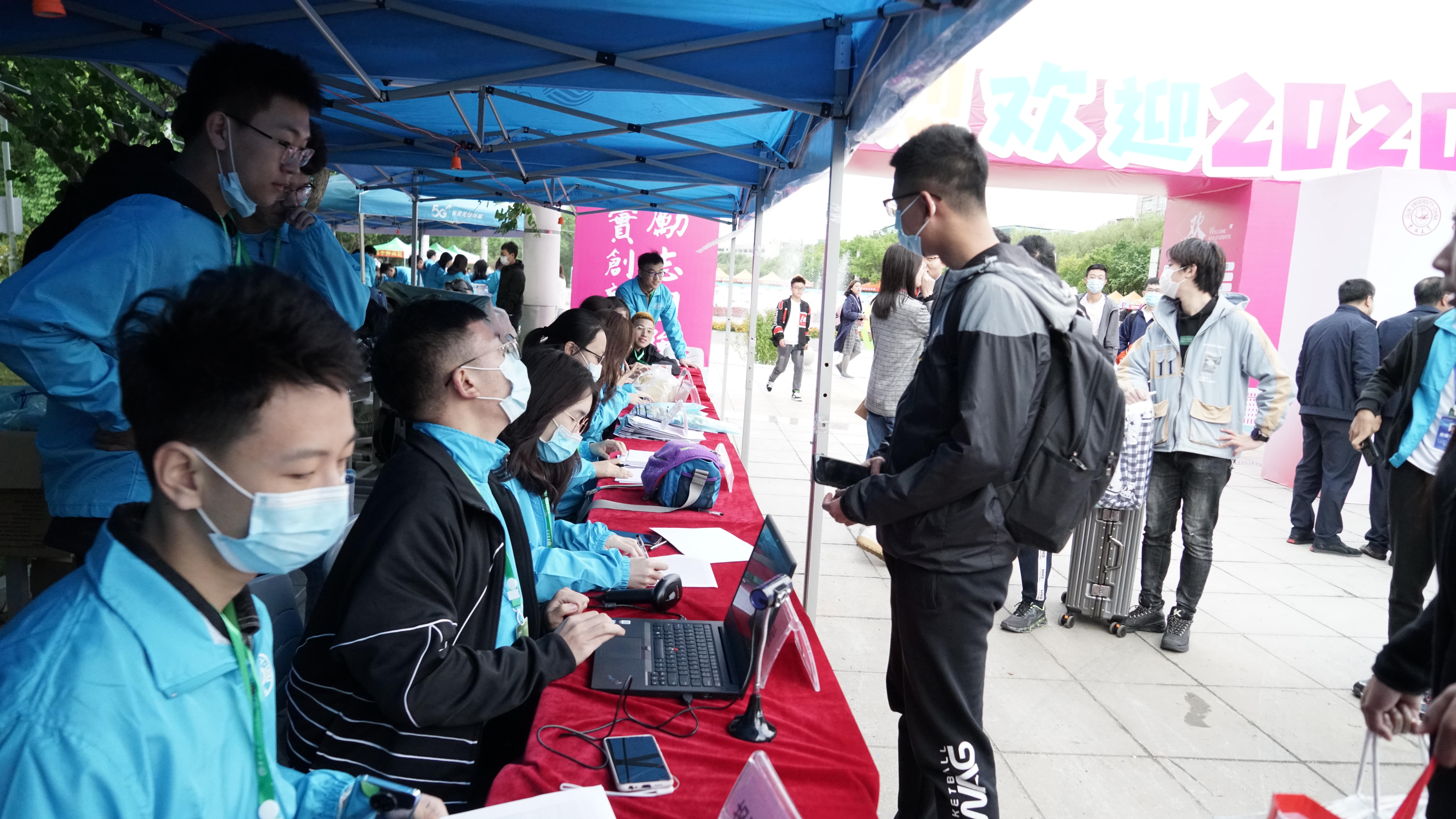 迎新志愿者统一佩戴志愿者工作证,穿志愿者制服。另外,为配合学校防疫要求,在场所有人员全部要求佩戴口罩,新生排队报到时队伍需间隔一米以上。