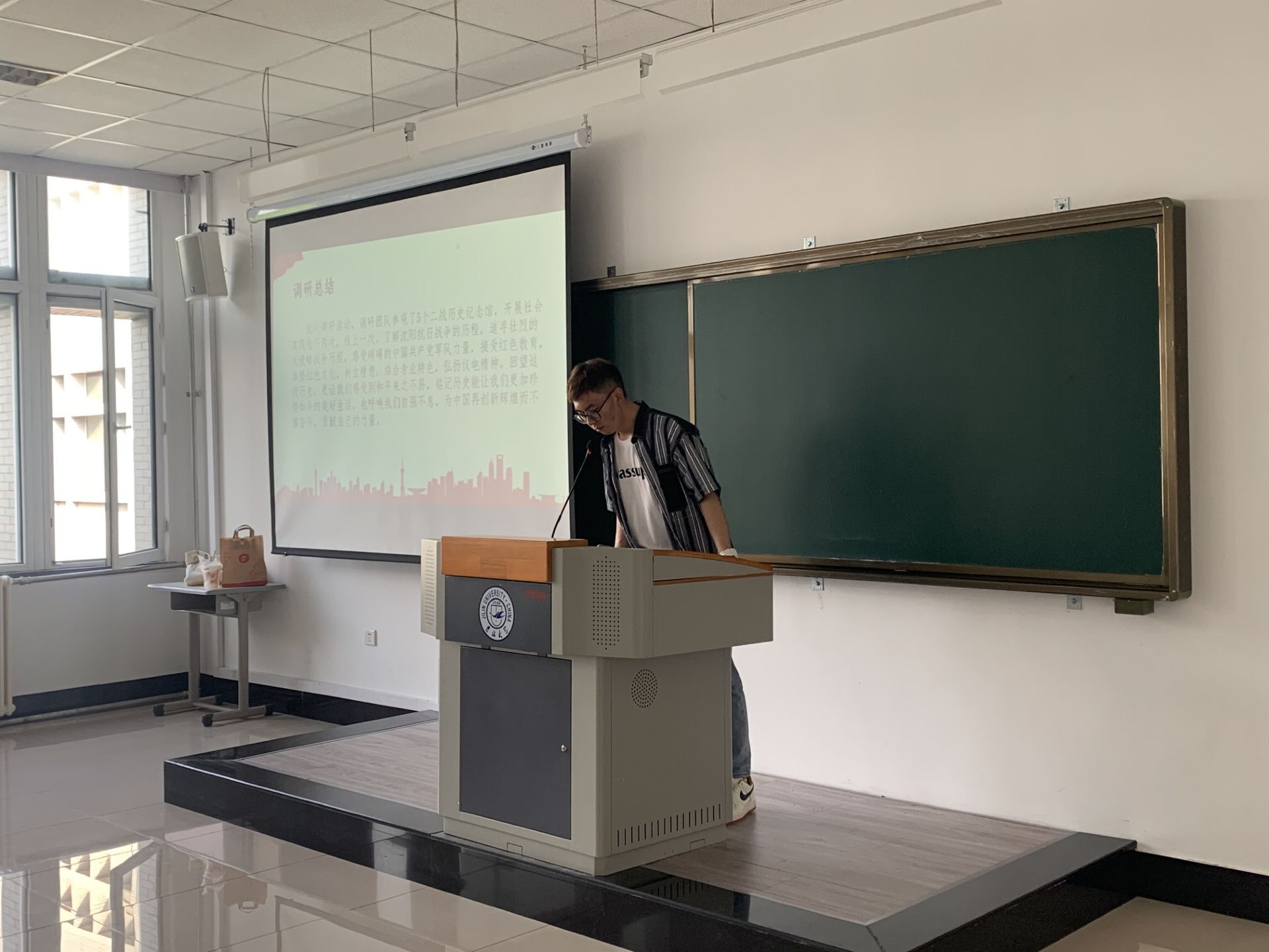本次宣讲活动通过ppt演讲、视频展示、问卷调查、现场交流等形式对团队的调研活动进行了全面地讲解,生动地还原了当时调研的情景,也向同学们分享了此次调研的成果。宣讲伊始,调研团成员首先简要介绍了此次调研的主要地点,调研团成员历时五天分别探访了沈阳审判日本战犯法庭、八一双拥博物馆、九一八历史博物馆、沈阳二战盟军战俘营、东北航空历史纪念馆、东北大学六个地点。紧接着,调研团详尽地介绍了在每个地点的具体调研活动,以及在八一社区进行的问卷调研活动,宣讲团成员分别与大家分享了自己的心得体会,引起了同学们的强烈反响。随后,调研团成员就调研内容与现场听众进行了热烈的交流与讨论。最后,由调研团代表对调研活动进行总结并深刻地阐述了调研的意义。