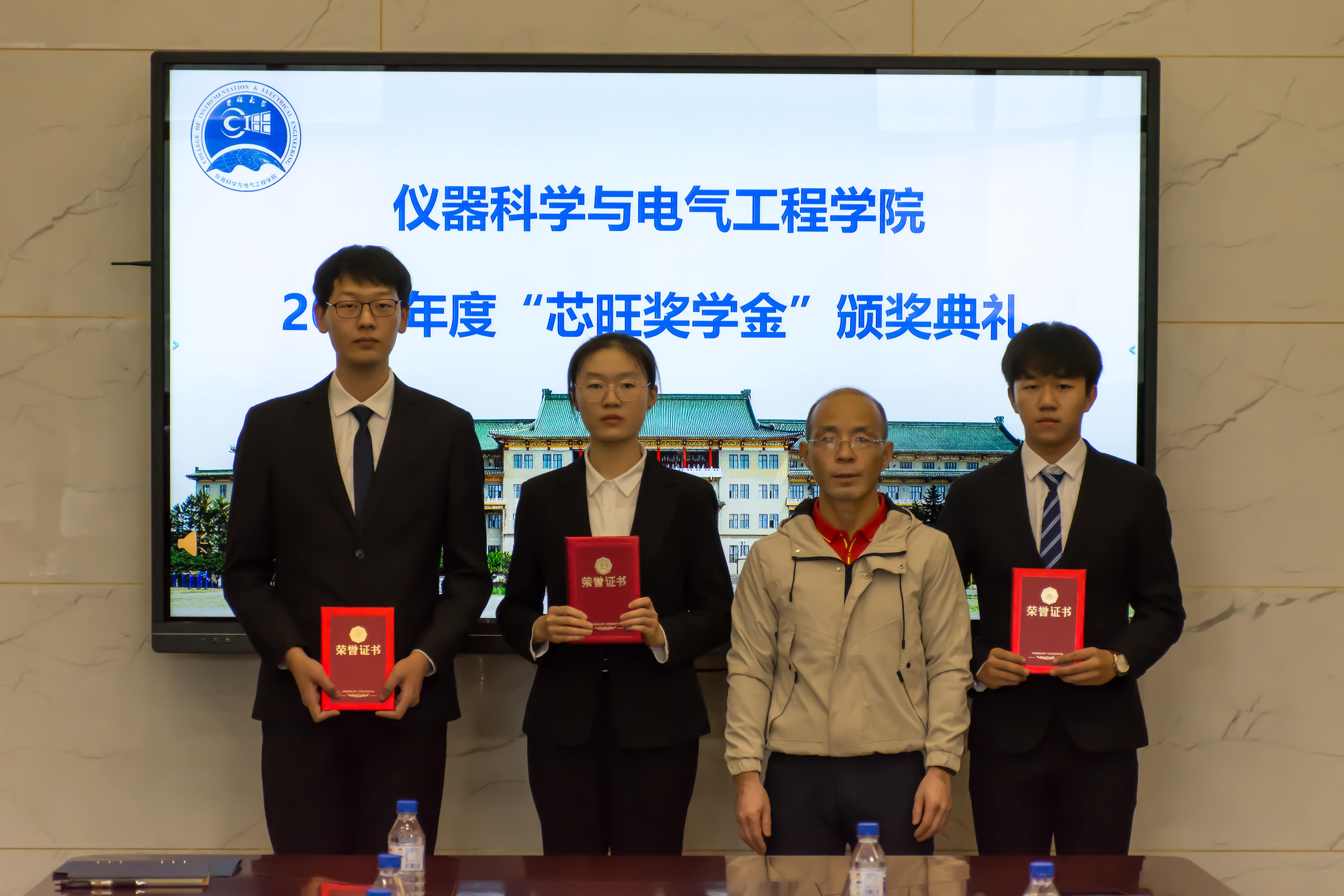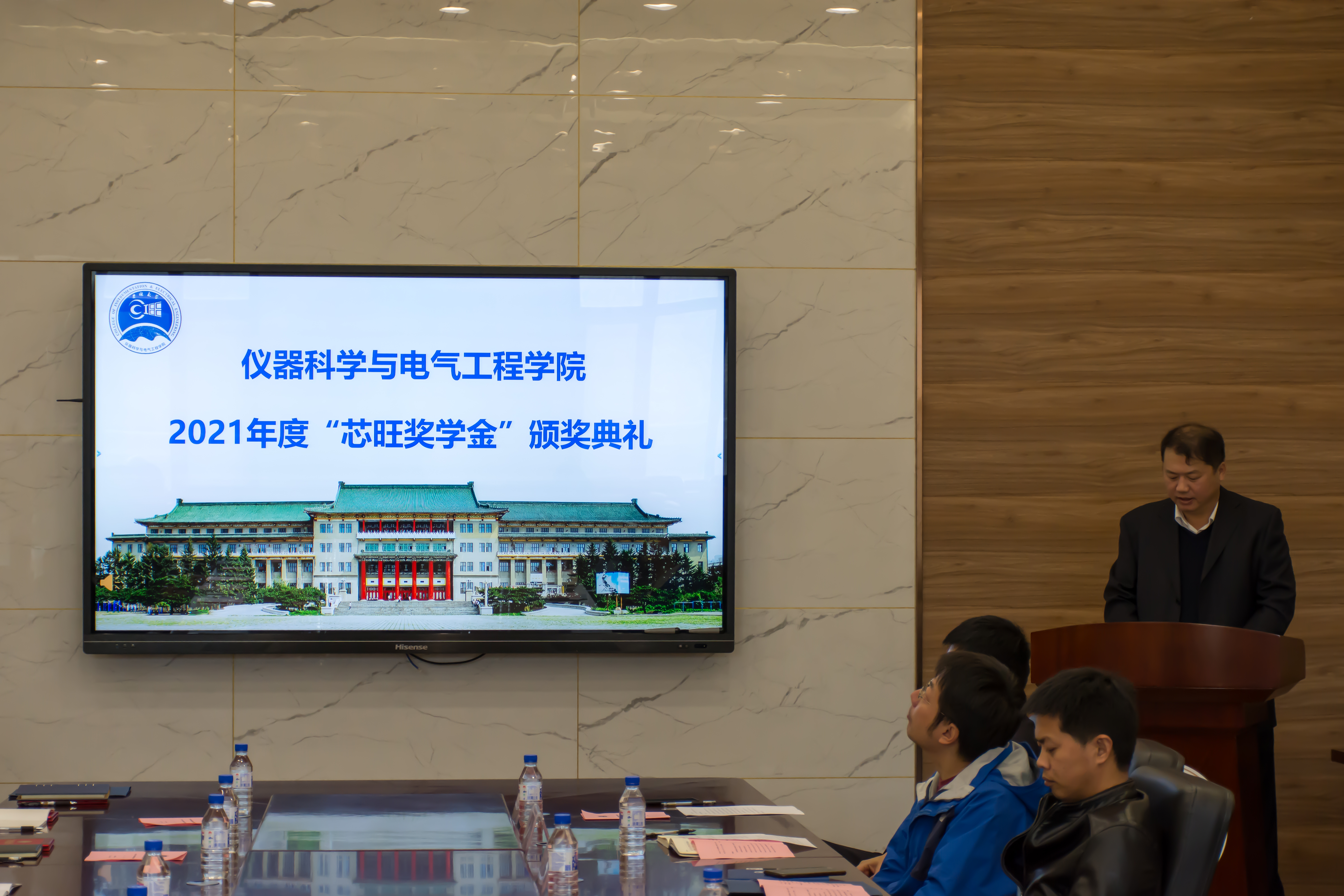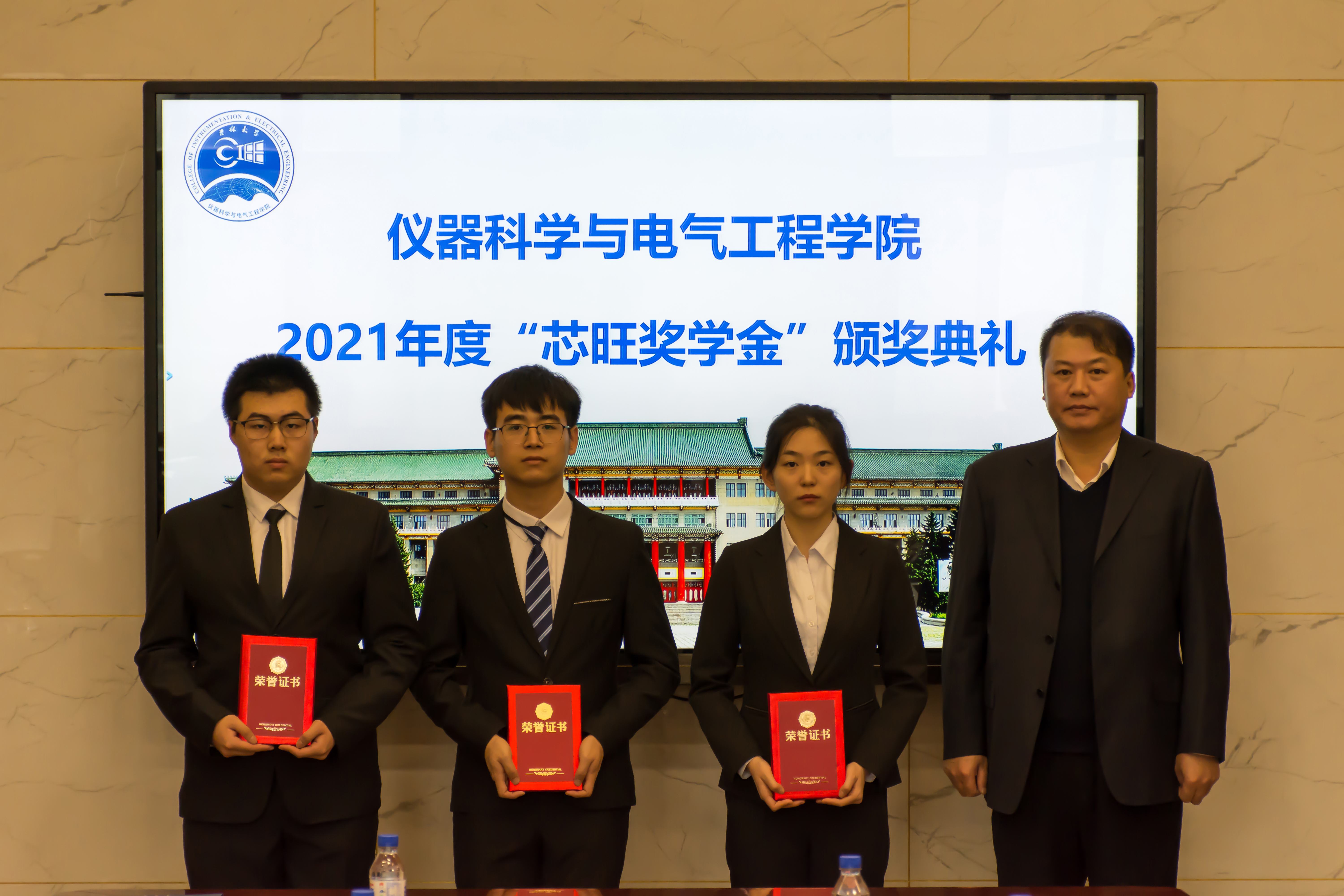 典礼开始,周伟老师向大家介绍了“芯旺”奖学金的设立历程,并对上海芯旺微电子技术有限公司表示感谢。在与会人员的掌声中,张子三先生上台致辞,他以“为中国汽车主控芯片夯实人才和技术基础”为题,用生动语言讲述前沿科技应用,同时鼓励同学们要珍惜大学时光,紧随时代潮流,砥砺前行成为行业栋梁。副院长刘长胜教授宣读《关于颁发成人网址 2021年度“芯旺奖学金”的决定》,学院2019级本科生共19人获奖,其中一等奖3名、二等奖3名、三等奖13名。宣读完毕,副院长刘长胜教授、随阳轶教授共同为获得2021年度“芯旺奖学金”三等奖的同学颁奖,学院党委书记邱增凯教授为获得二等奖的同学颁奖,张子三先生为获得一等奖的同学颁奖。颁奖仪式结束后,学生代表王鑫宇同学汇报在校学习情况,他表达了对上海芯旺微电子技术有限公司的感谢和对领导老师的敬意,并表示,作为一名新时代的大学生应努力把握现在,充分利用好学校和企业这两个优秀的平台,学习专业知识,积累实践能力,绝不辜负企业和领导老师寄予我们的厚望!