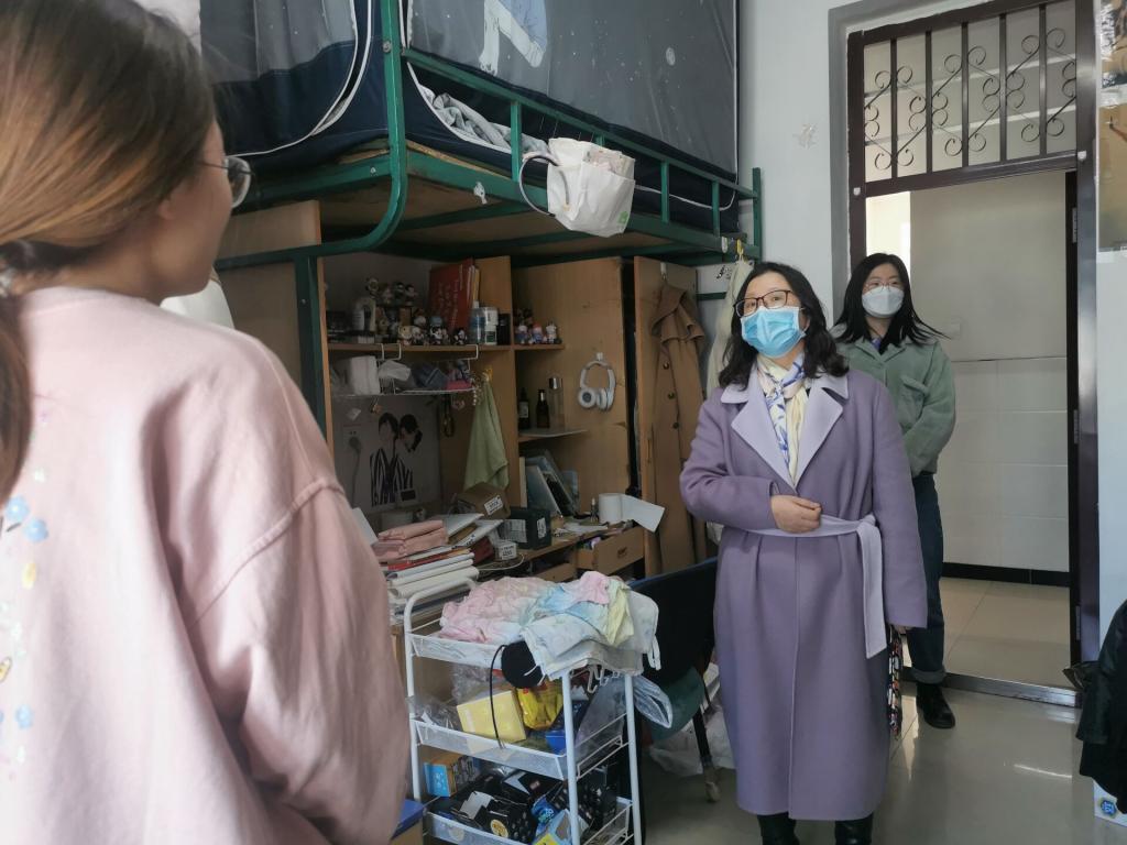 院长嵇艳鞠老师、学院党委副书记兼副院长周伟老师代表学院领导班子,走进朝阳校区一公寓和五公寓看望返校学生,学院团委副书记、2019级辅导员马姗姗老师随行走访。