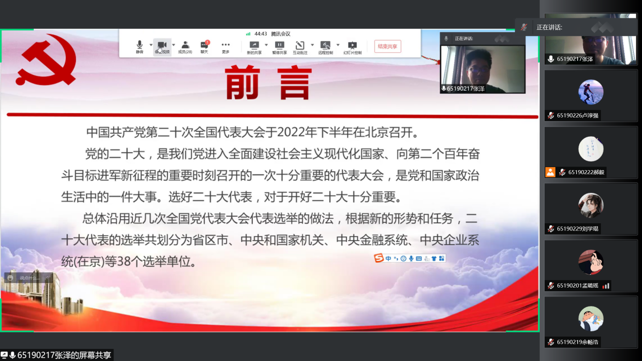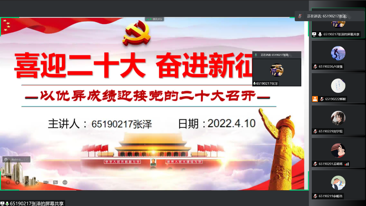 651902团支部线上开展“喜迎二十大,永远跟党走,奋进新征程”主题团日活动,支部全体团员积极参与其中