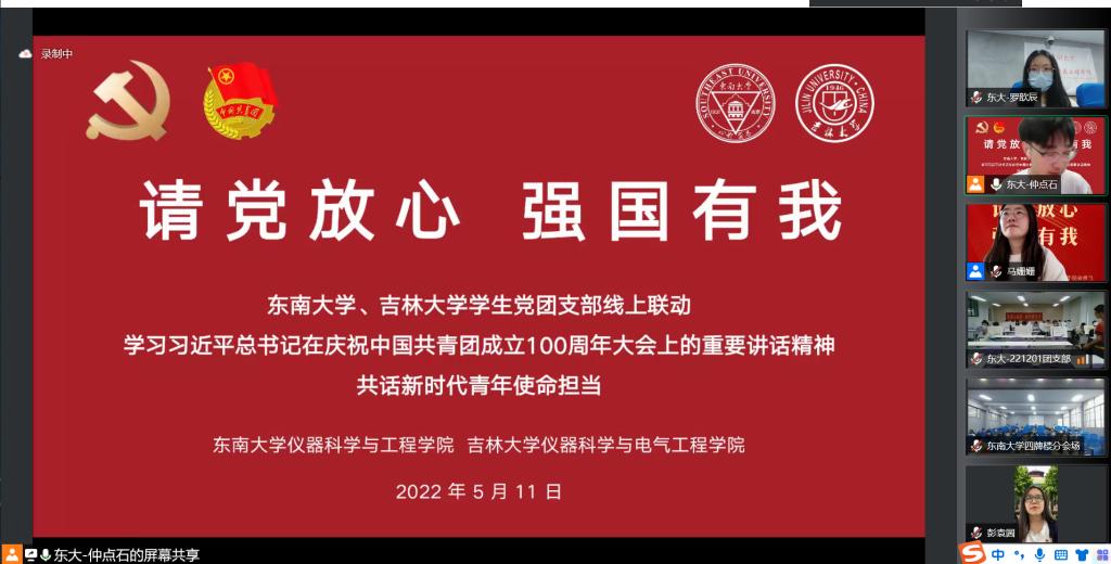 的支持表示感谢,向与会同学们致以亲切的问候。随后在东南大学仲点石老师的带领下,与会成员共同学习习近平总书记在庆祝中国共产主义青年团成立100周年大会上的重要讲话精神,激励同学们增强勇担时代重任的光荣感、责任感、使命感,号召同学们汲取智慧、提振信心,为实现中华民族伟大复兴中国梦贡献力量。深入学习习近平总书记的重要讲话后,成人网址