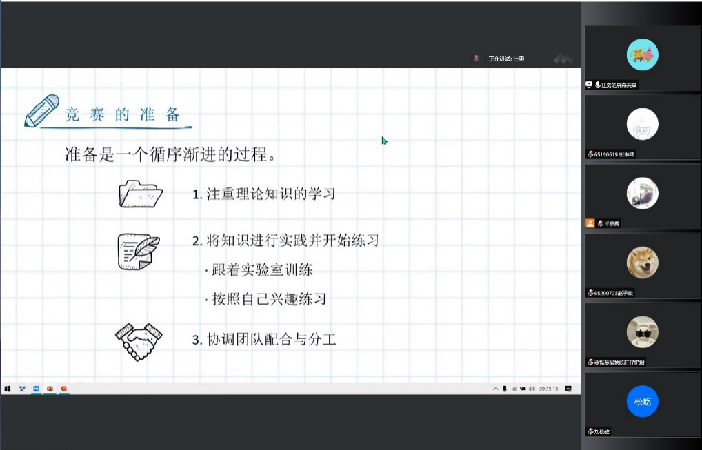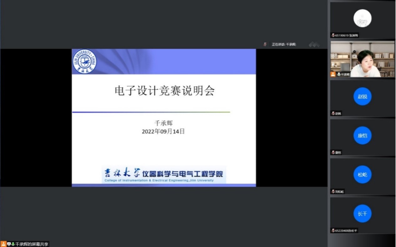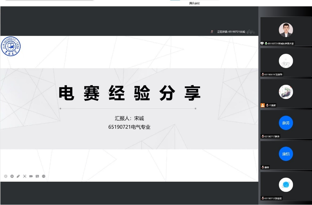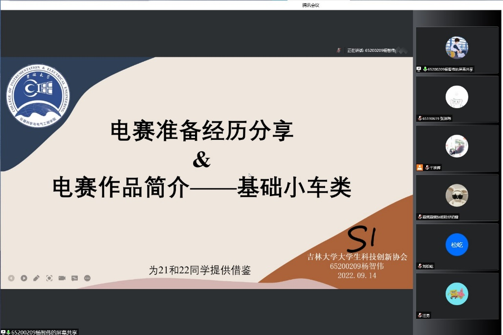 大学生科技创新协会(以下简称“科协”),于2022年9月14日晚,通过腾讯会议直播的方式开办了“电子设计竞赛说明会”。会议由科协指导教师千承辉主持,邀请的嘉宾有参加电赛并取得成绩的程麟涵、汪勇、黄安冉、杨智伟、薛涛、李佳凇和宋诚七位同学。共计161人参会,千老师和各位嘉宾为同学们从不同角度详细地介绍了电赛。
