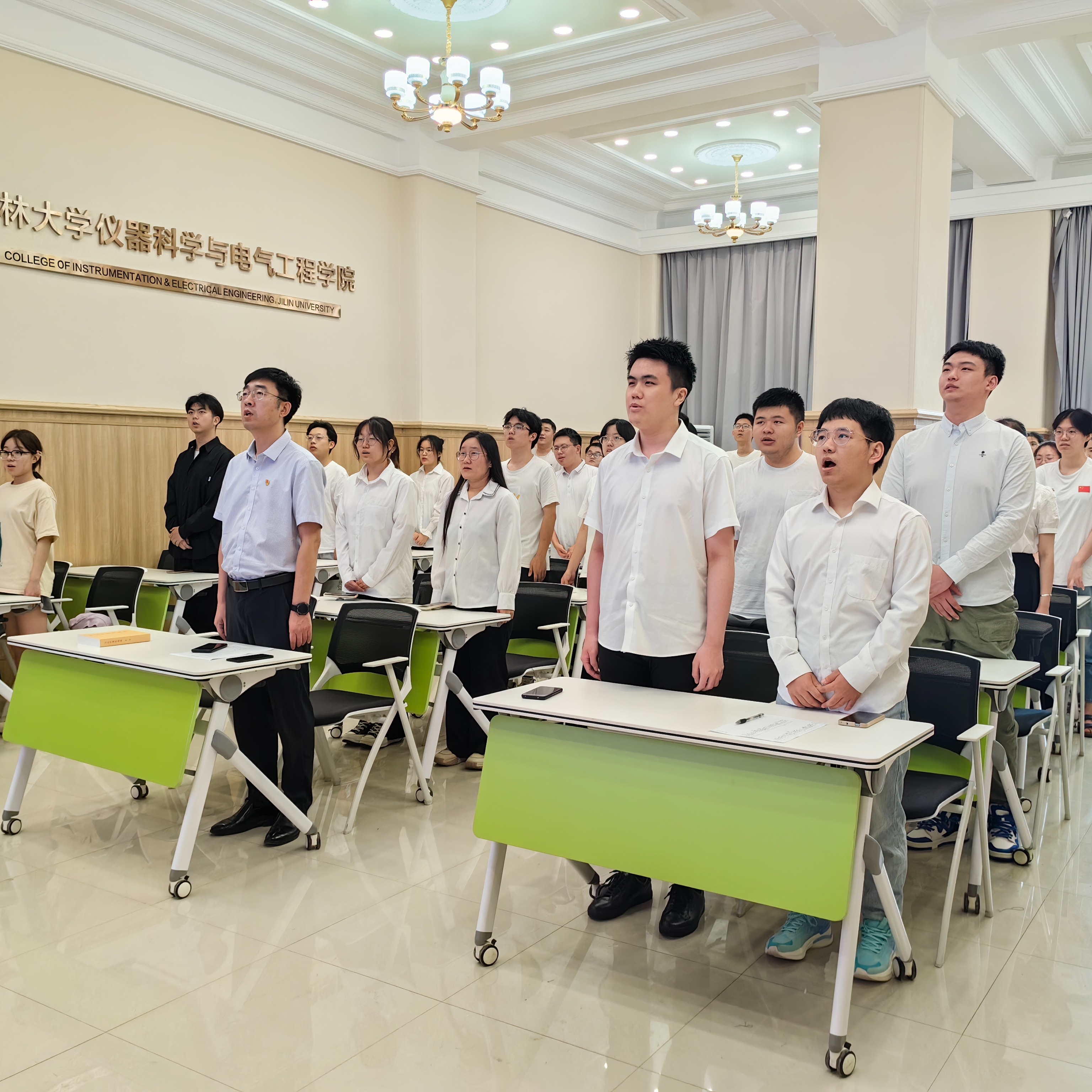 本科生党支部举行2023年度新发展党员入党宣誓仪式,学院党委副书记兼副院长周伟、电气本科生党支部书记孙鹏博出席仪式,仪式由测控本科生党支部书记马姗姗主持。
