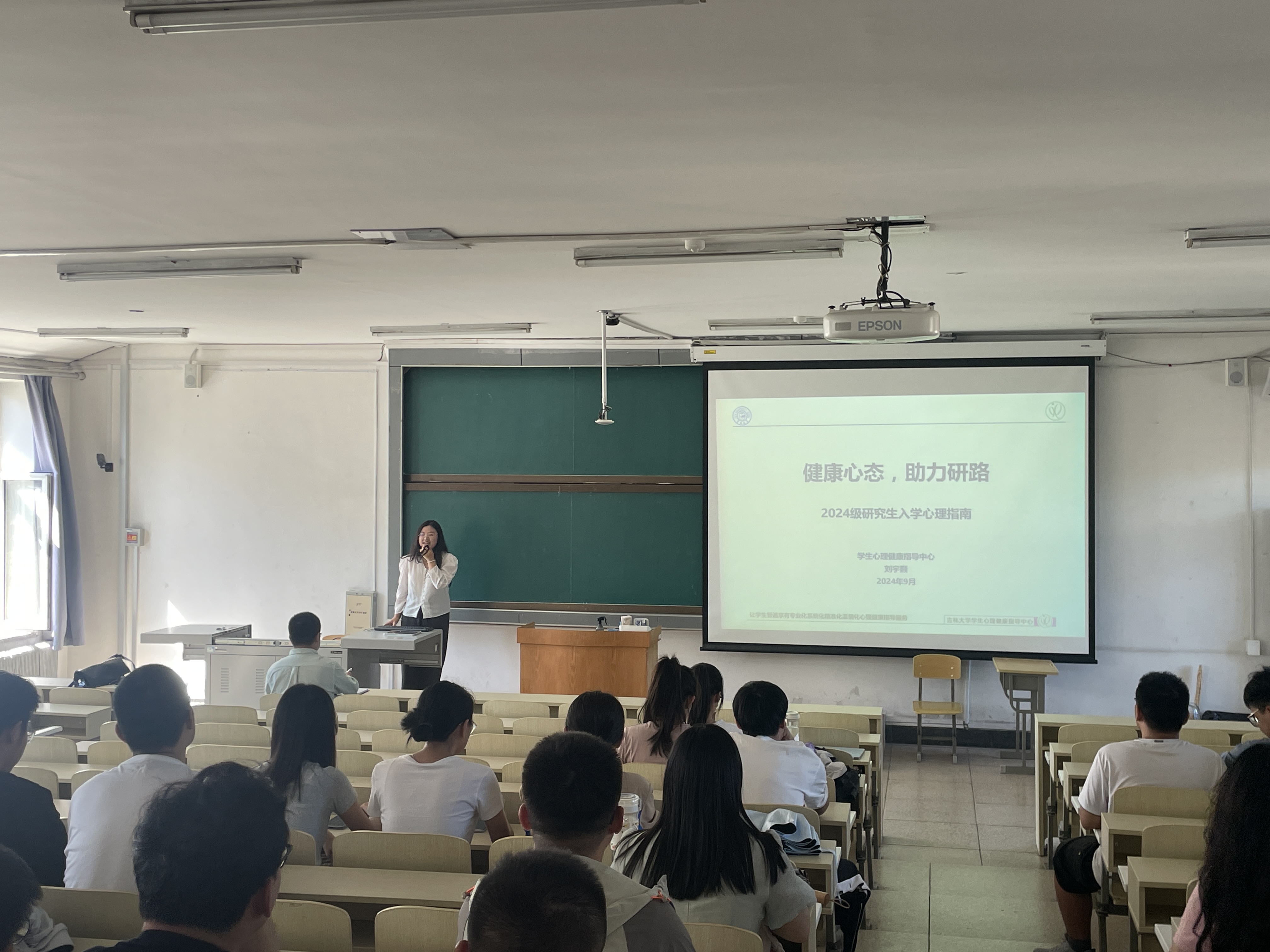 2024级研究生新生更好地适应研究生生活,实现“心理入学”,9月3日下午,在学校学生心理健康指导中心的指导下,学院研究生办公室在朝阳校区水工楼举办了研究生新生心理健康教育讲座。本次活动由研究生辅导员周琪老师主持,学生心理健康指导中心刘宇颢主讲,学院全体2024级研究生参加活动。