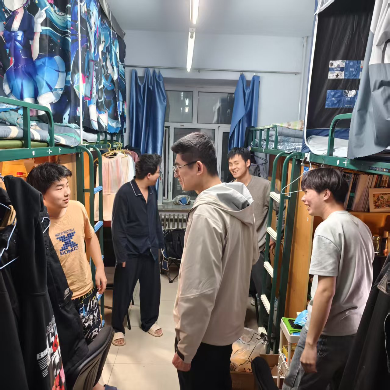 检查过程中,王老师逐间走访学生寝室,针对电源插座使用规范、电器设备合规性等关键环节展开细致核查。通过现场讲解违规电器的潜在风险,强化学生安全用电意识。同时,建议同学们勤打扫勤通风,共同维护整洁有序的居住环境。除安全检查外,王老师还与同学们展开了亲切交流,详细询问课程学习进度、校园生活适应情况。