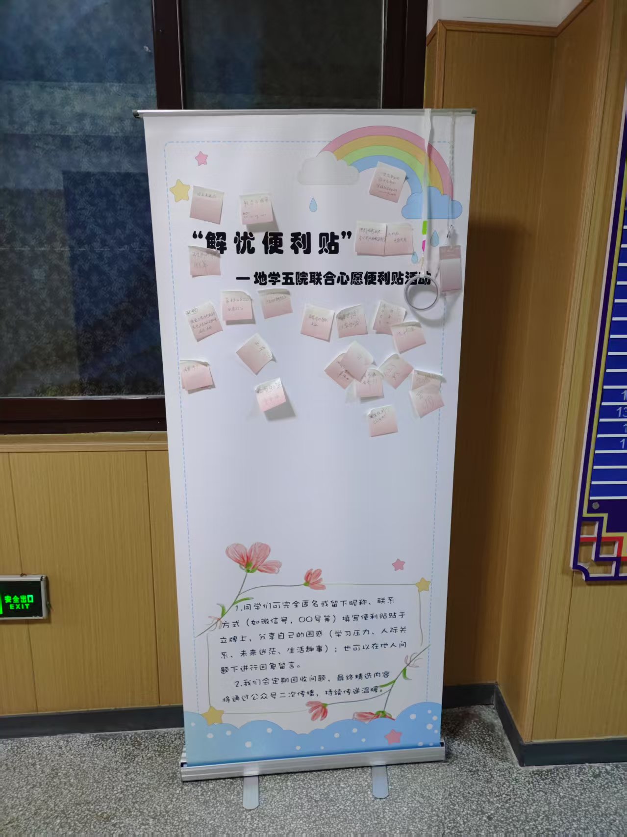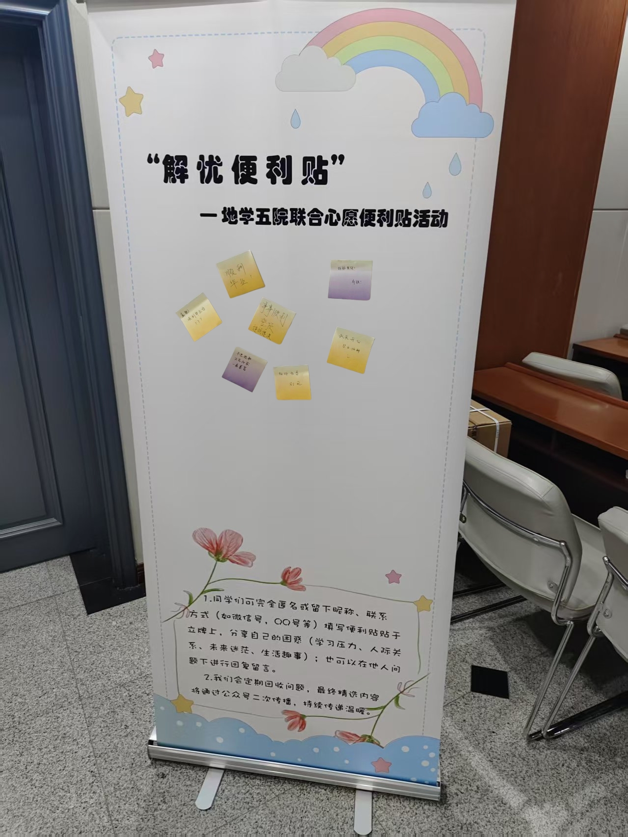 与朝阳校区各学院联合举办“解忧便利贴”心理健康互动活动。本次活动由学院心理朋辈辅导员马婧涵同学的策划组织,旨在为朝阳校区研究生同学们搭建一个温暖的心理互助平台,在校园内掀起关注心理健康的热潮。