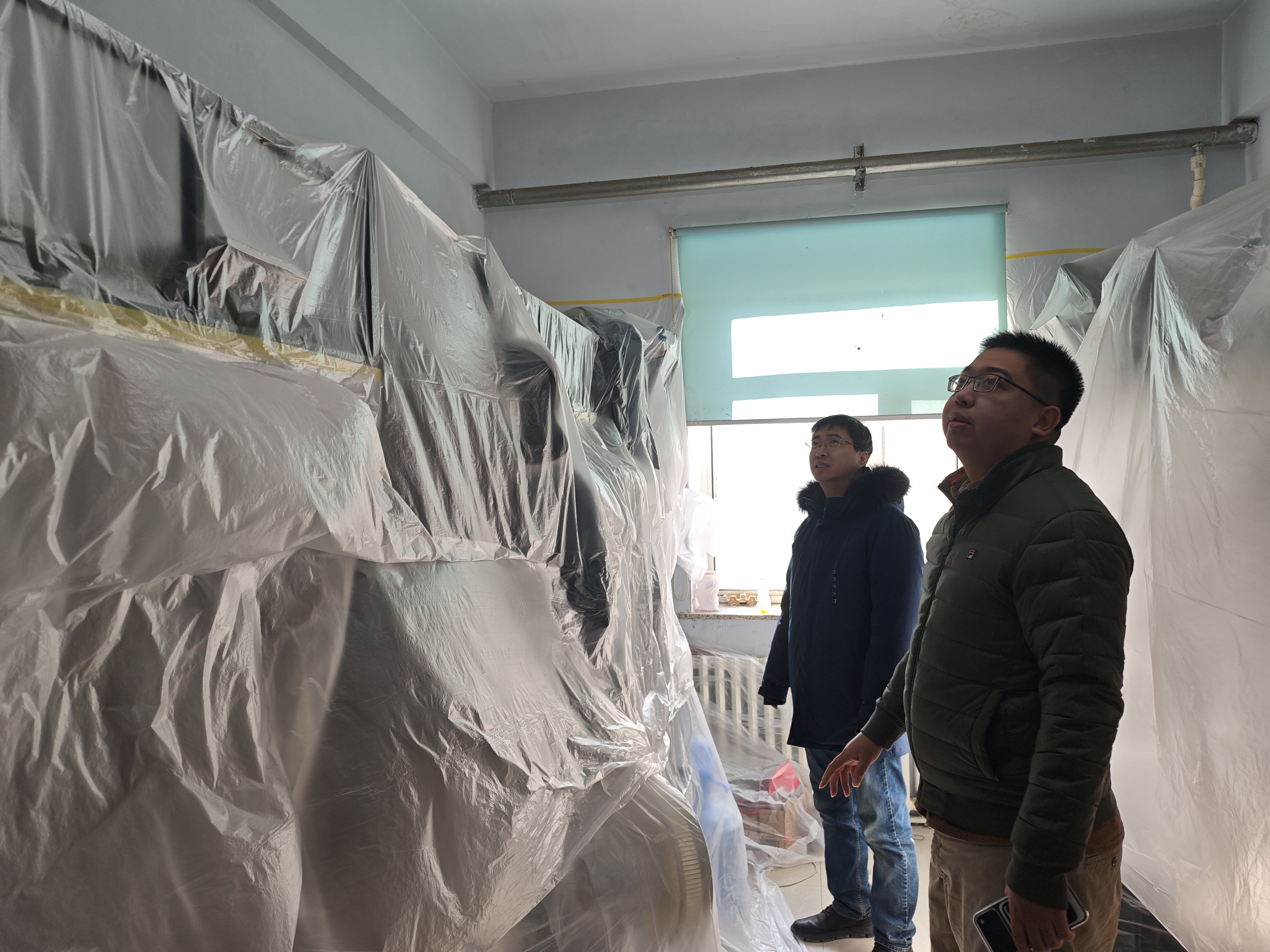 在朝阳校区学生公寓,两位老师逐间走访研究生寝室,细致排查安全隐患,实地核查研究生假期留校及合寝情况,详细询问了申请在校过春节研究生的科研进展和日常生活情况。在已离校研究生寝室,重点核实断电情况和物品整理情况;在未离校研究生寝室,两位老师叮嘱大家施工期间要做好物品整理和防尘工作,在校期间要注意人身安全、财产安全、出行安全、实验室安全、公寓安全,防范电信和网络诈骗。