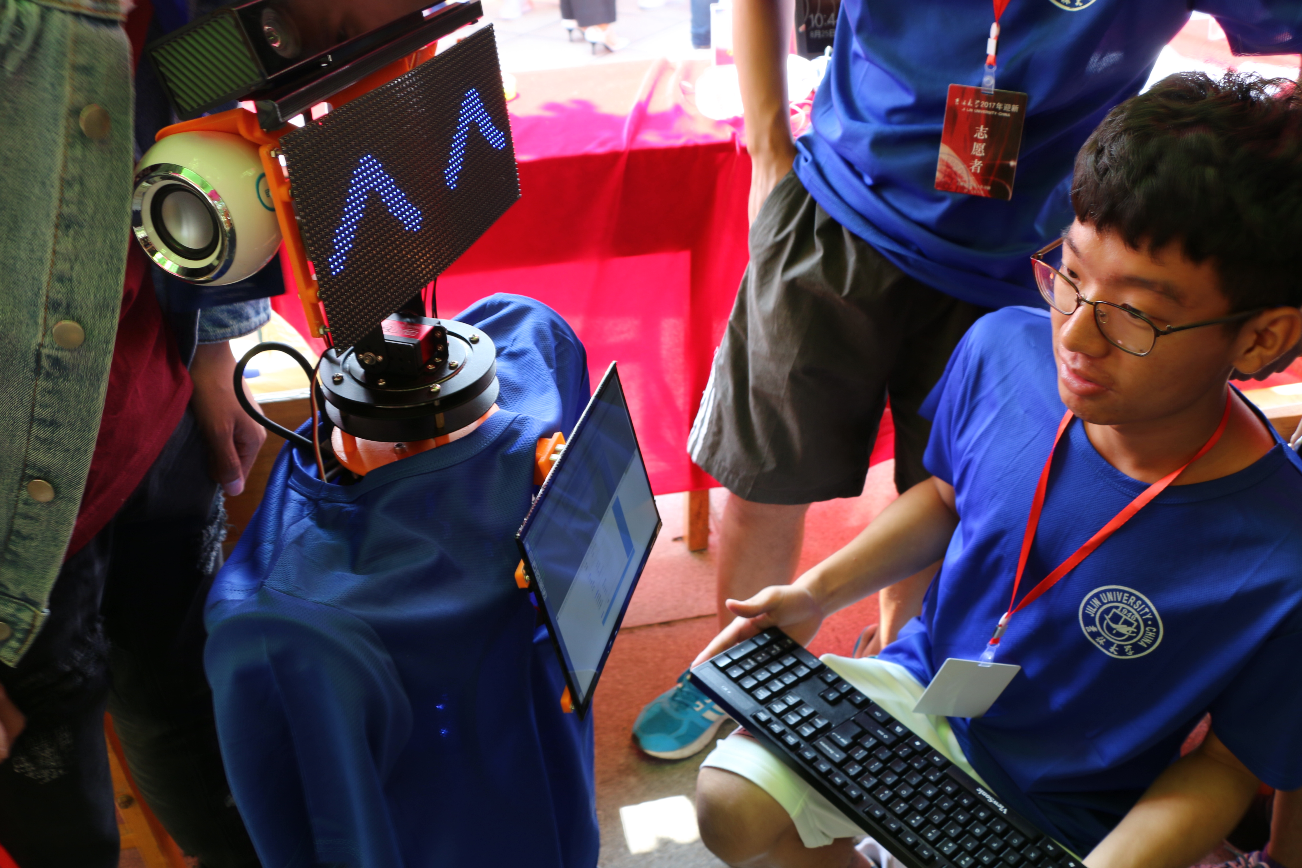 的迎新工作正式开始。在仪电学院的迎新现场出现了一个新面孔——“小七”,它是仪电学院本科生设计开发的语音互动机器人,其在迎新现场的工作是和新生进行语音互动,并提供给新生寝室、学号、班级等基本信息。