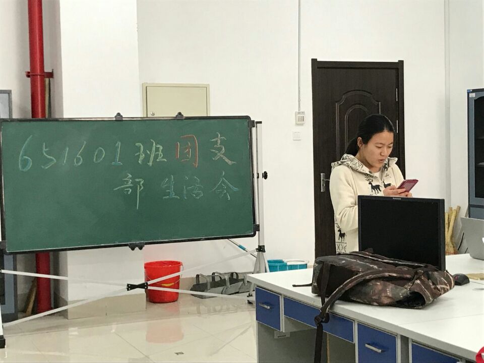 651601班举行了“学习习近平总书记讲话,做合格共青团员”的团支部专题组织生活会,651601班代班马松辰学长、代班团支书朱美意学姐、以及651601班全体同学于李四光实验楼444实验室进行了学习交流。