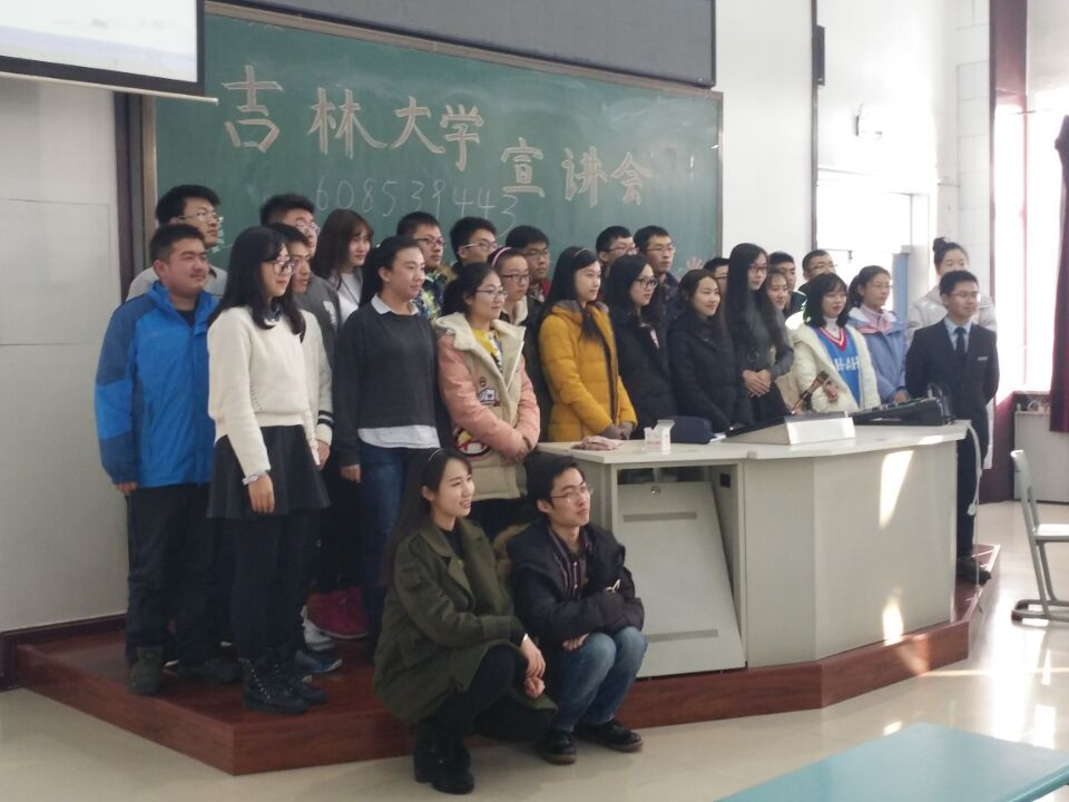 各院校的优势专业以及各专业的就业方向和就业前景。接着,队员们又向同学们传授了各自的高考经验。最后队员们系统地讲述了吉大的学习氛围和生活环境,在浏览了一些吉大风景照片、各学院社团活动演出的剧照后,向同学们讲解了吉大的招生简章、招生条件和招生政策。其间,队员们还不忘介绍成人网址