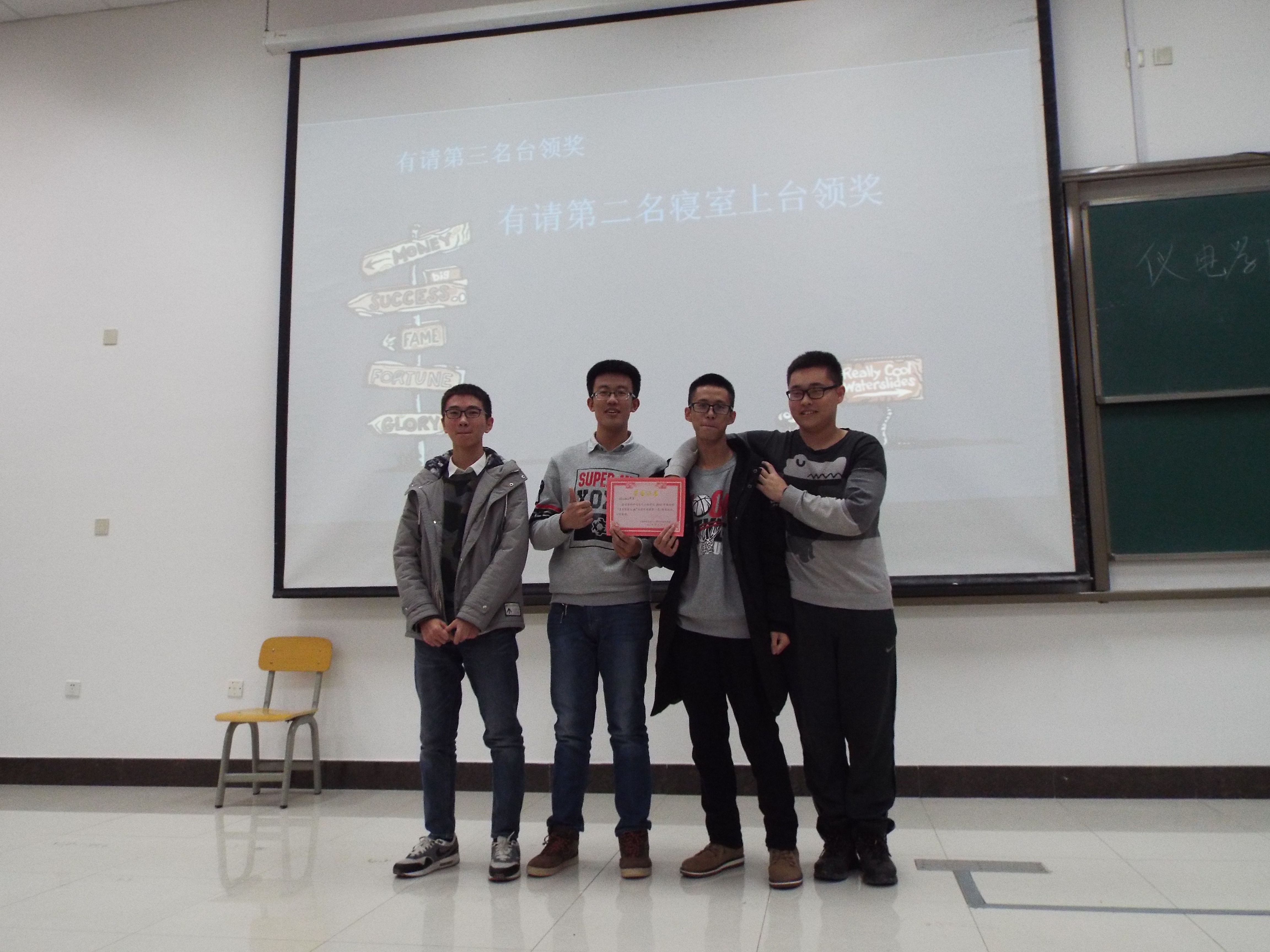 接下来到了安全知识讲述的部分,由主持人讲解相关消防以及生活安全知识,如火灾发生时的逃生方法,灭火器的使用,食品安全,食物中毒时的紧急处理方式,重金属中毒时喝牛奶等蛋白质类食品解毒,出行安全等,并现场提出了五个问题,让观众作答,以检验刚刚普及安全知识的成效。之后,活动进行最后一个环节——你话我猜,每组出两个同学,一个用语言描述大屏幕上的词语,另一个猜,各种描述五花八门,逗得观众捧腹大笑。快乐的时光总是那么短暂,伴随着大家的笑声和掌声,活动接近了尾声,第一组获得第一名,由部长曹佳锐同学为每个获奖寝室颁发奖状,大家合影留念,活动到此取得圆满成功。