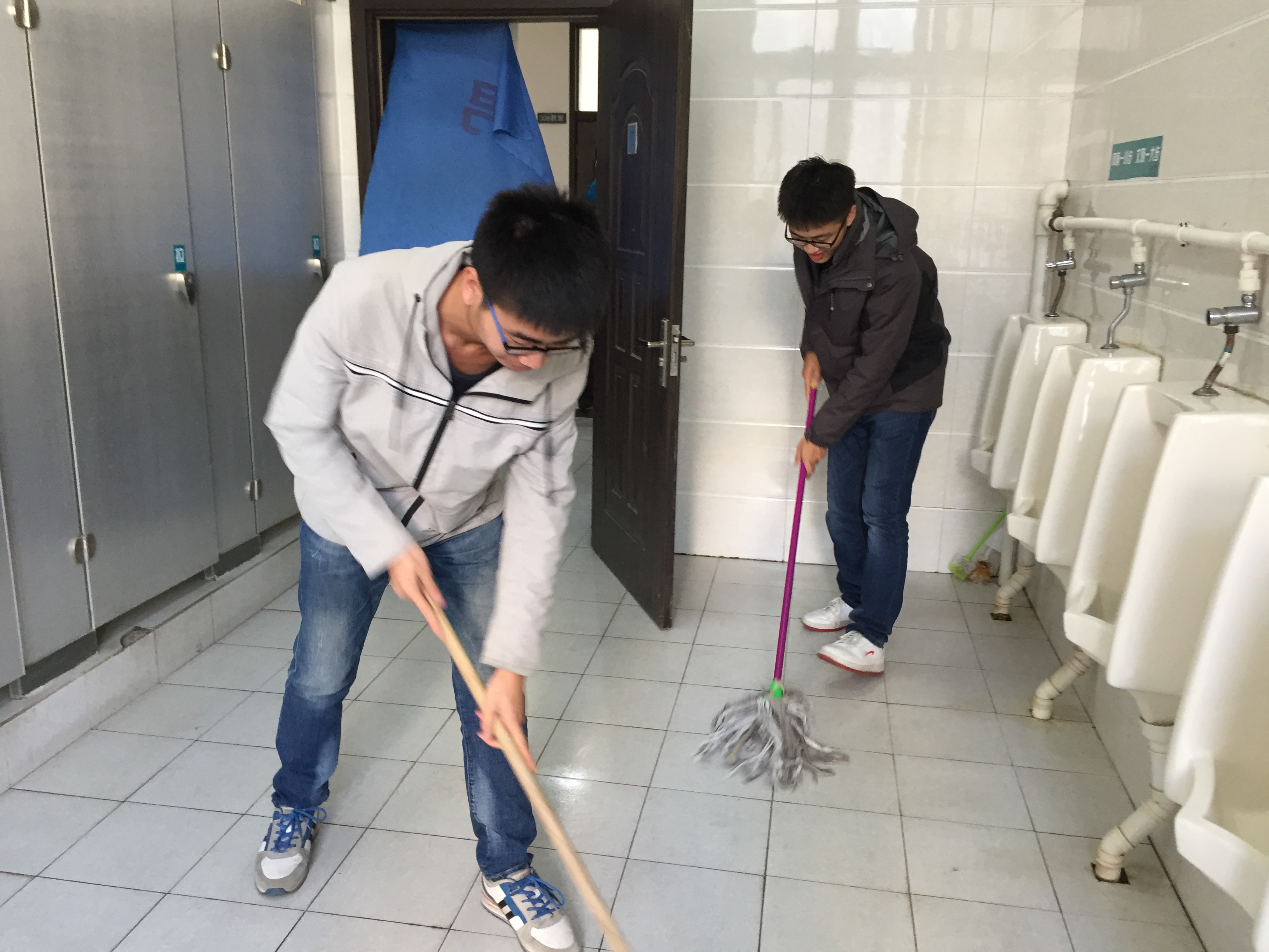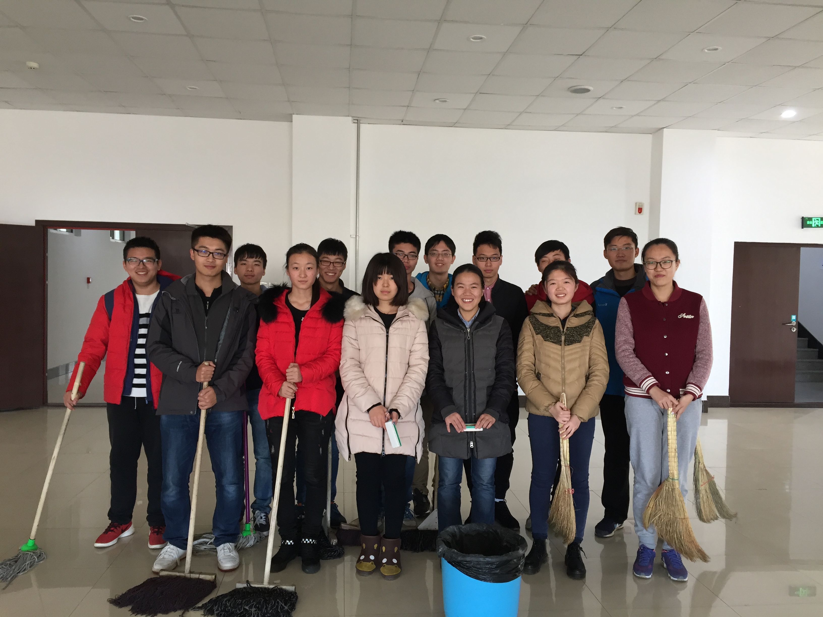 12时,14位入党积极分子放弃了午休的机会来到了李四光教学楼。大家首先讨论打扫范围和任务分配的问题,积极分子们各抒己见,没有相互推让,即使面对最难打扫的公共卫生间,依旧有人主动请缨。任务分配完毕后,大家便迅速投入到了劳动之中,扫地、拖地、擦窗台、擦黑板、倒垃圾……14位入党积极分子用行动诠释着共产主义信仰所包含的最基本的精神——奉献。时间一分一秒地过去了,活动接近尾声,所有人都显得疲惫,但微露的倦态并没有掩盖住他们脸上由衷的笑容。最后,大家收拾好工具,合影留念。