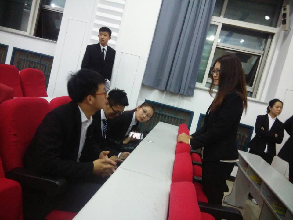 分团委学生会成员在经信F9阶举行各部门的志愿者宣讲活动之前,宣传联络部的三名副部在部长于思佳的召集下参加了这次的副部见面活动。