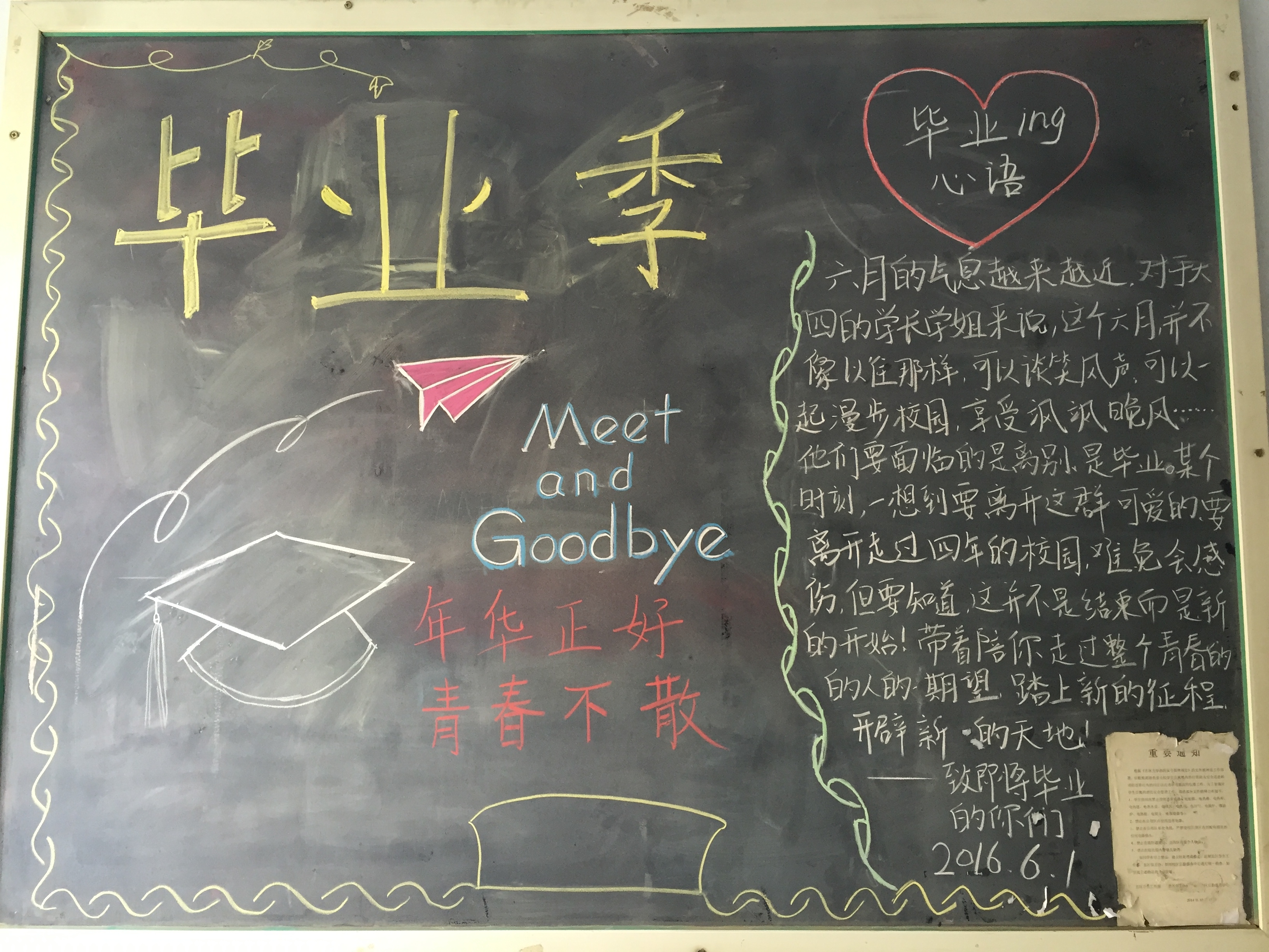 团委于2016年 6月1日15:00在朝阳校区一、二、五学生公寓开展了绘制“毕业季”主题黑板报活动,成人网址