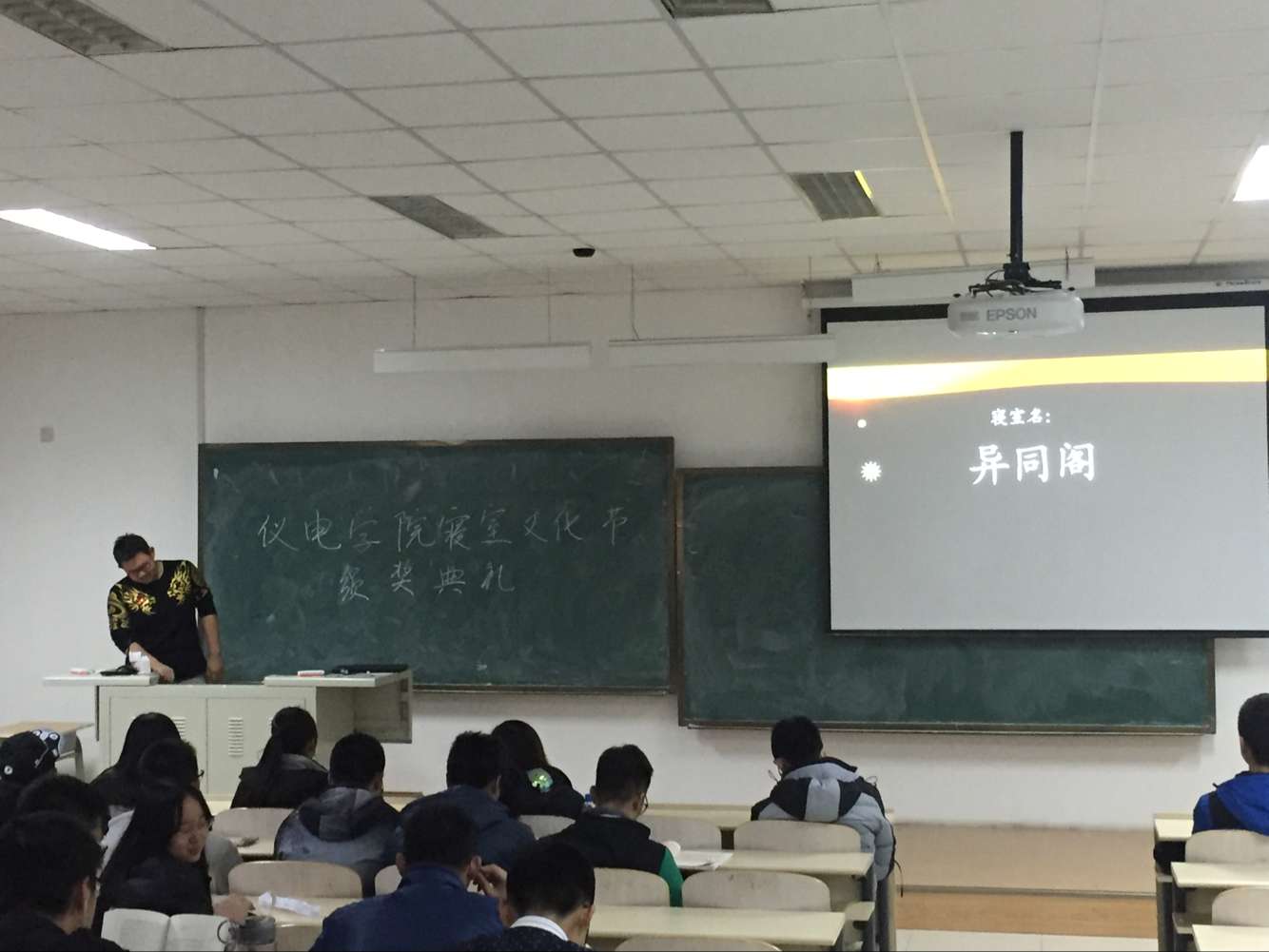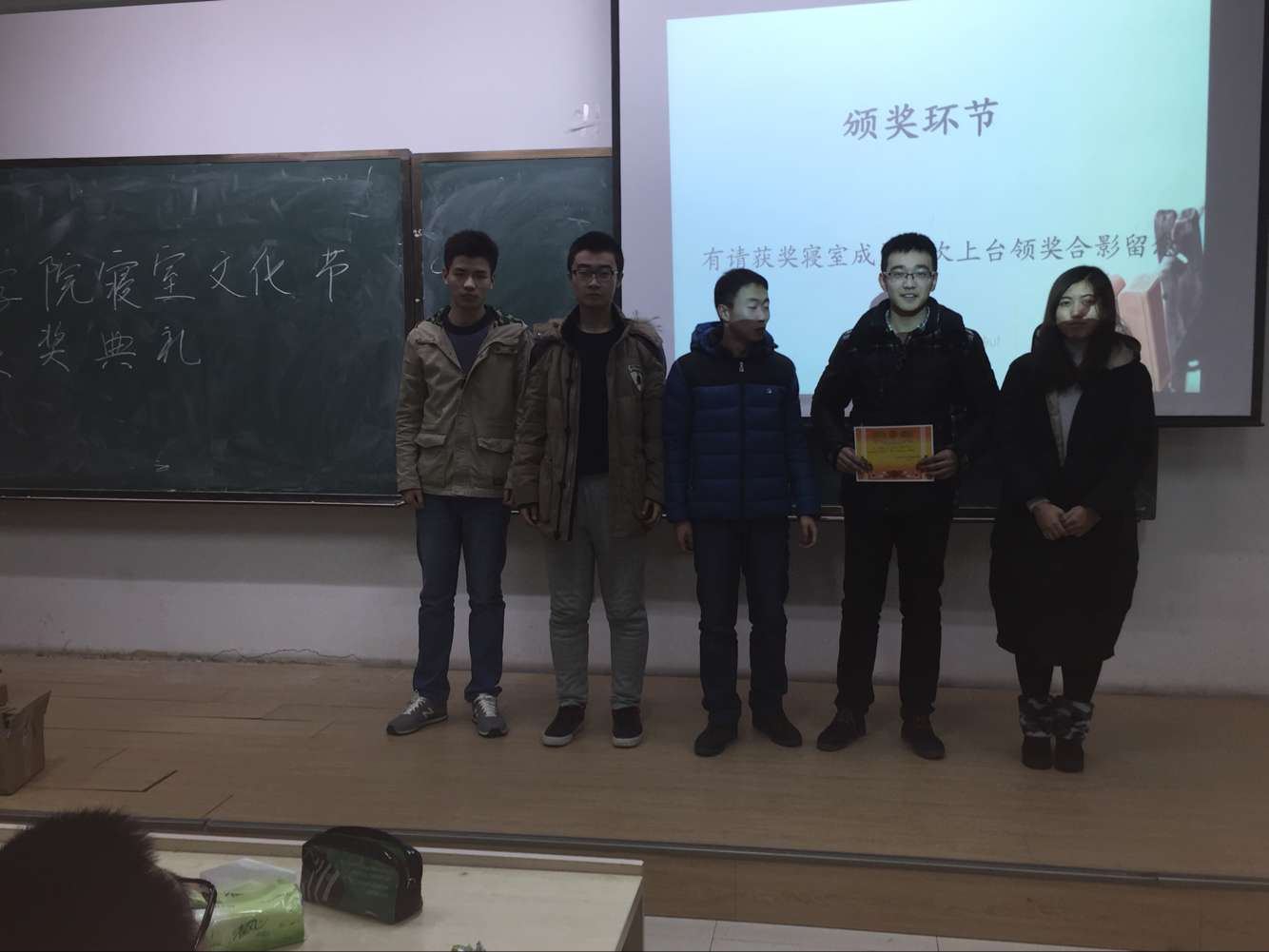 学生会生活部于2015年11月下旬举办了寝室文化节活动,并于11月28日18:00于李四光楼107室进行了寝室文化节颁奖仪式。