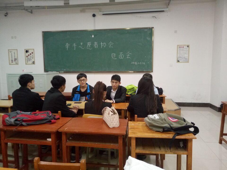 学生会牵手志愿者协会于2015年10月17日下午17:30在李四光教学楼318室召开了副部见面会。牵手志愿者协会会长侯雪征主持会议,副会长及各部长参加了本次会议。
