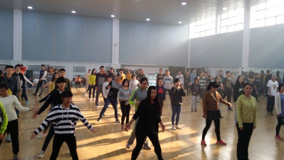 学生会体育部组织学生于2015年10月25日8:30在体育馆进行有氧舞蹈培训。