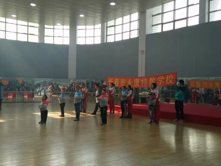 首先老师带领大家学习了热身舞,迅速调动了同学们的情绪,并且通过一些小小的游戏使大家消除了彼此的陌生感。热身舞之后,老师开始了第一个舞蹈的教学,在老师的认真指导与同学们的积极配合下第一个舞蹈很快得到掌握,同学们显得更加活跃,充满期待。休息时,体育老师请上了几位来自长春永康特教学校的小弟弟小妹妹,在现场举行一场募捐活动,据孩子们的领队说,他们都患有疾病,但孩子们很喜欢运动,并表示募捐的善款将为他们购买运动器材。休息过后,老师又教给同学们旋律十足的鸭梨大舞蹈,这些孩子们也积极的参与进来,和同学们一起沉浸在舞蹈中,他们欢乐的蹦着跳着,深深地感染了在场的每一位老师和同学。