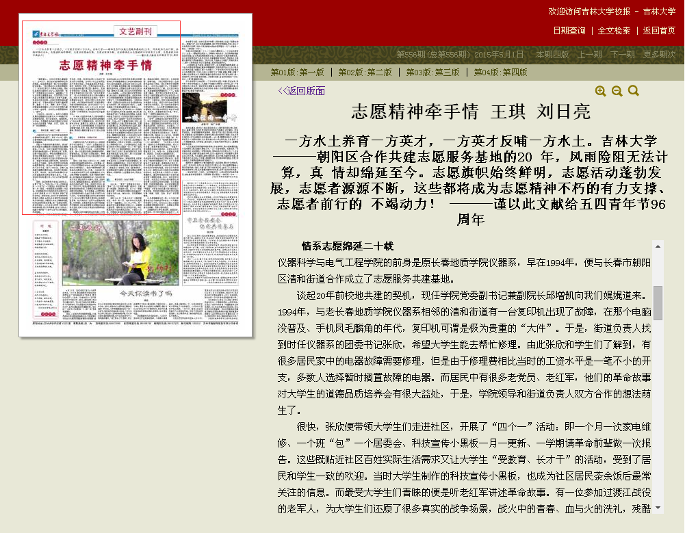 长期开展的志愿服务事迹进行报道,以此纪念五四青年节96周年。