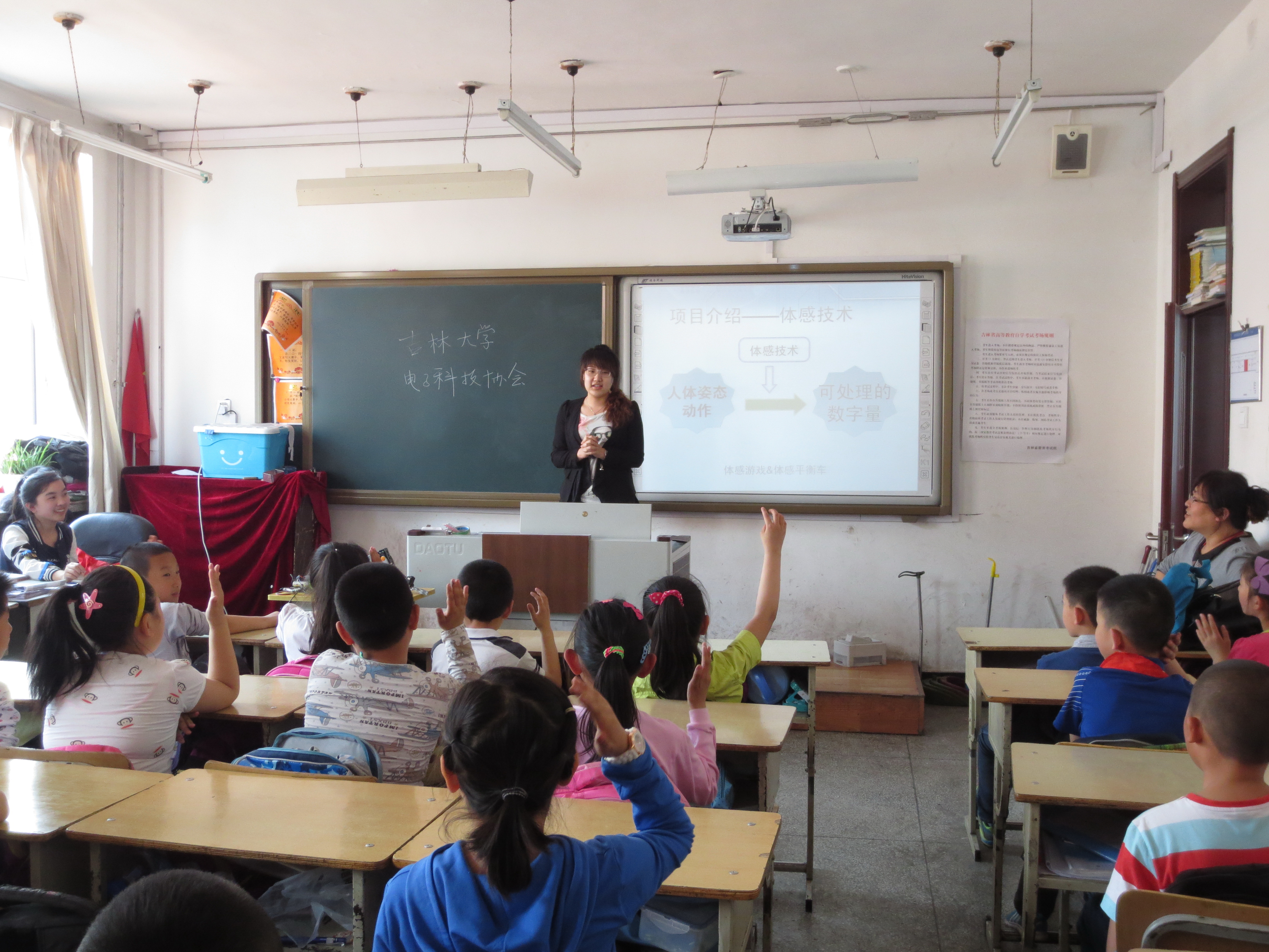 电子科技协会的志愿者首先为安达小学的同学们展示了智能飞行器、体感机械手臂、心率测量器等多个电子作品,奇妙的电子作品让孩子们大开眼界。随后,孩子们在志愿者们的指导下尝试了一些简单的电子模块制作,在动手实践中体会到了科学知识带来的无限乐趣。同学们认真聆听、跃跃欲试,从孩子们清澈明亮的眼睛里我们看到了他们对科学知识的渴求和对大学生活的向往。活动结束后,同学们脸上都洋溢着满足的笑容,丝毫没有疲倦和抱怨。这次科技志愿活动虽然持续时间不长,但是每个同学都收获了很多知识。