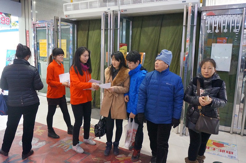 朝阳校区男女寝门口展开消费者维权活动。志愿者给市民和学生发放消费维权知识宣传单和商家满意度调查问卷,商场的市民和学校的学生都积极配合填写,并对成人网址