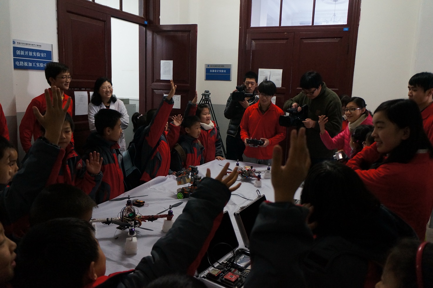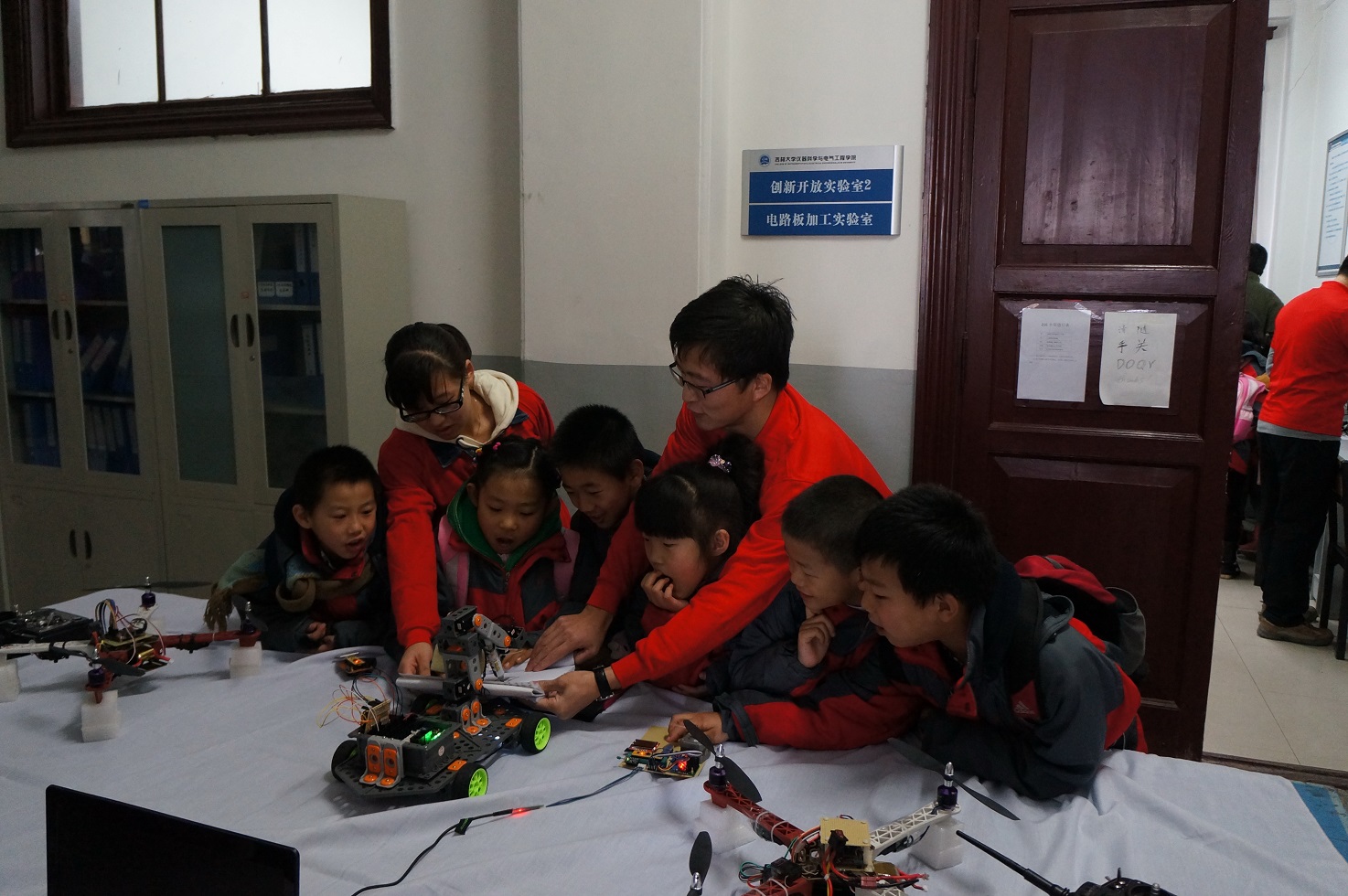 大学生党员志愿者在院团委书记兼本科生党支部书记朱宇、本科生党支部副书记张昊宇及学院主要学生干部的带领下热情地接待了他们,并对孩子们的到来表示热烈欢迎。随后科技参观活动正式开始,孩子们在成人网址