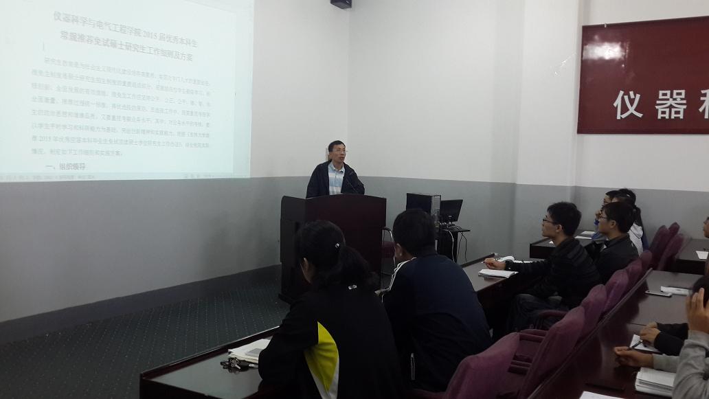 2015届优秀本科生常规推荐免试硕士研究生工作细则及方案》,就其中大家普遍关注的政策进行了详细解读,并就推免工作具体安排进行了部署。陈祖斌院长希望同学们认真研读工作细则及方案,认真按照工作安排进行申报和准备。随后,陈祖斌院长就《成人网址