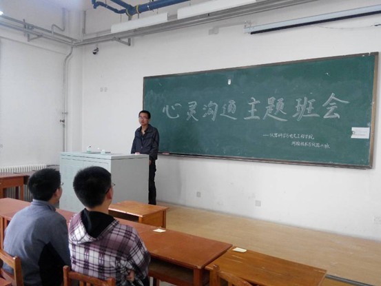 此次班会由二班团支书、心理委员策划主持,以游戏为主要活动形式,旨在促进大家的沟通,增强集体荣誉感。班会开始之前,全班被随机分成5个小组并各选组长一名。第一项活动为:心理游戏——“穿越雷区”,每组派出2名同学,一名同学在蒙住眼睛的情况下,根据队友的指挥通过障碍区,比赛制调动了同学们的积极性,现场气氛十分活跃。接下来是“你说我听”环节,同学们坐下来诉说心事,进行了一场心贴心的交流。