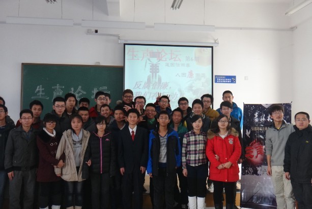 团委组织策划了“生声论坛”系列活动。第5期论坛活动以“青年学生视野中的反腐倡廉行动”为主题于2013年12月18日在中心校区李四光教学楼214教室举行。