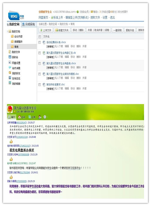 第九届分团委、学生会于2013年10月30日正式开通公共网盘,为团学组织全体成员提供一个更加方便、快捷的工作资源平台。