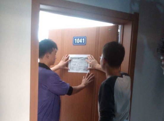 此次学生公寓安全宣传活动具体由学生会生活部组织实施,宣传内容主要为寝室安全防火防盗。当天19:00活动正式开始,宣传调查组成员一行分别走访了北苑一公寓的男生宿舍和北苑二公寓的女生宿舍,工作人员认真走访了每个寝室,对各个寝室是否使用违章电器、消防隐患等问题做了详细记录。从整体上看男生寝室和女生寝室安全情况良好。走访过程中,工作人员除了对寝室的安全情况作以点评和指导外,还向同学们就如何杜绝安全隐患问题进行了宣传。每到一个寝室,他们便把寝室安全宣传单发给他们,并在寝室门口贴好宣传单。