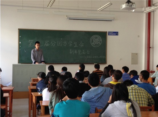 会上,分团委副书记孙鹏琨同学首先介绍了新一届分团委学生会主要学生干部的基本情况。随后,学生会主席韩哲鑫同学在肯定和赞扬第八届分团委学生会工作的基础上,对本届学生会提出了新的期望和要求,他指出在借鉴往届学生会举办活动经验的基础上,第九届分团委学生会要大胆创新,加强精品活动建设,力图精益求精;同时,学生会上下要营造公平公正的环境,以提高全体学生会成员工作的积极性;最后,他希望所有学生干部们要严格按照学院领导老师的要求,妥善处理好学习与工作的关系,做德才兼备、品学兼优的学生干部。随后,学生会副主席兼秘书部部长徐维同学对分团委、学生会各部门的职能进行了详细介绍,并对学生会的制度、纪律进行了说明。最后,各部部长分别与本部副部长就本部门今后的工作方向和工作内容展开了交流与讨论,大家各抒己见,纷纷为各部门工作的开展出谋献计,提出了宝贵的意见。
