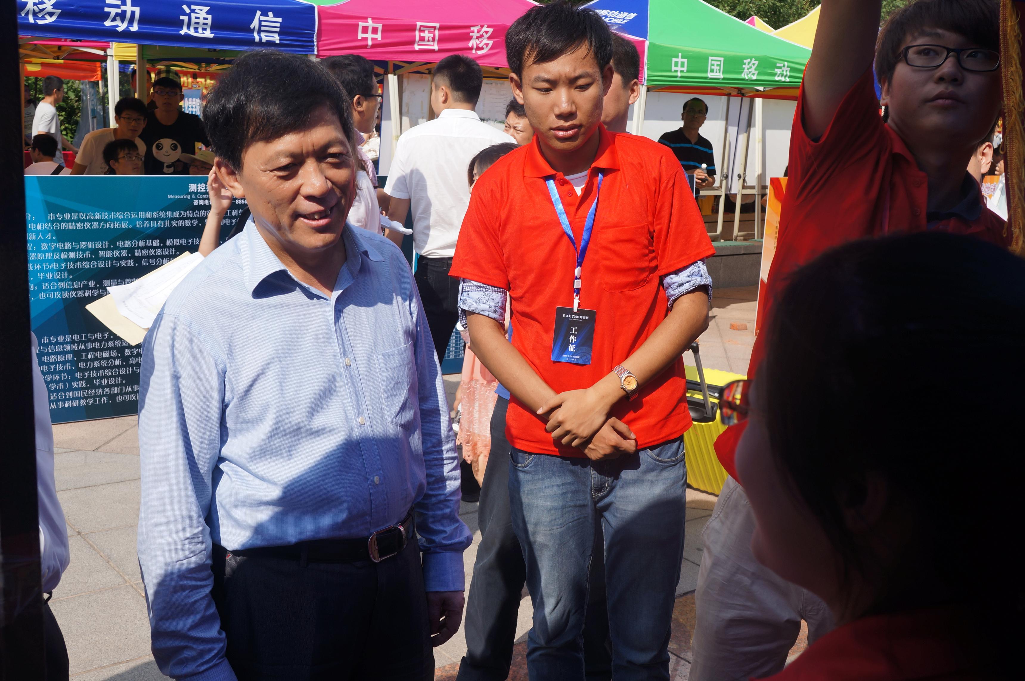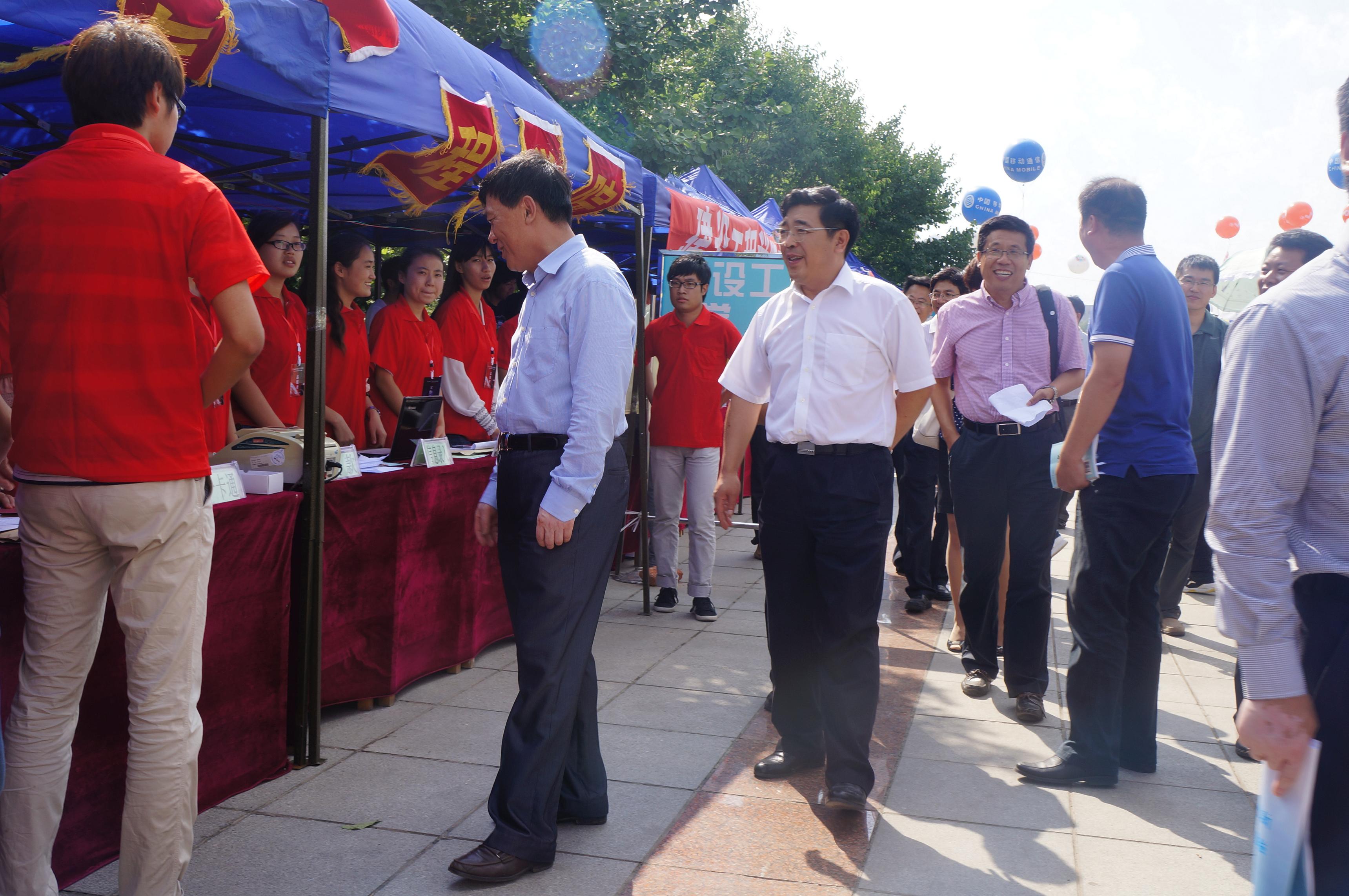 校领导张向东副校长、张晓林副校长一行亲临迎新现场慰问迎新志愿者和新生及家长们,并对成人网址