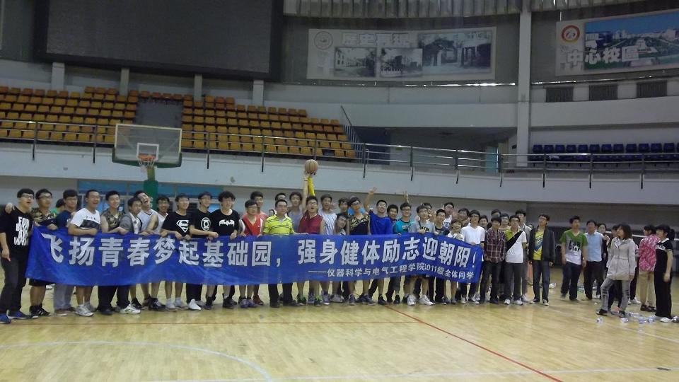 2011级于2013年6月3日晚在中心校区体育馆成功举行了以“飞扬青春梦起基础园,强身健体励志迎朝阳”为主题的阳光体育系列活动之篮球友谊赛。此次比赛按照专业分为两队,分别是测控技术与仪器队和电气工程及其自动化队,2011级辅导员朱宇及2011级各班级同学在现场观看了比赛。