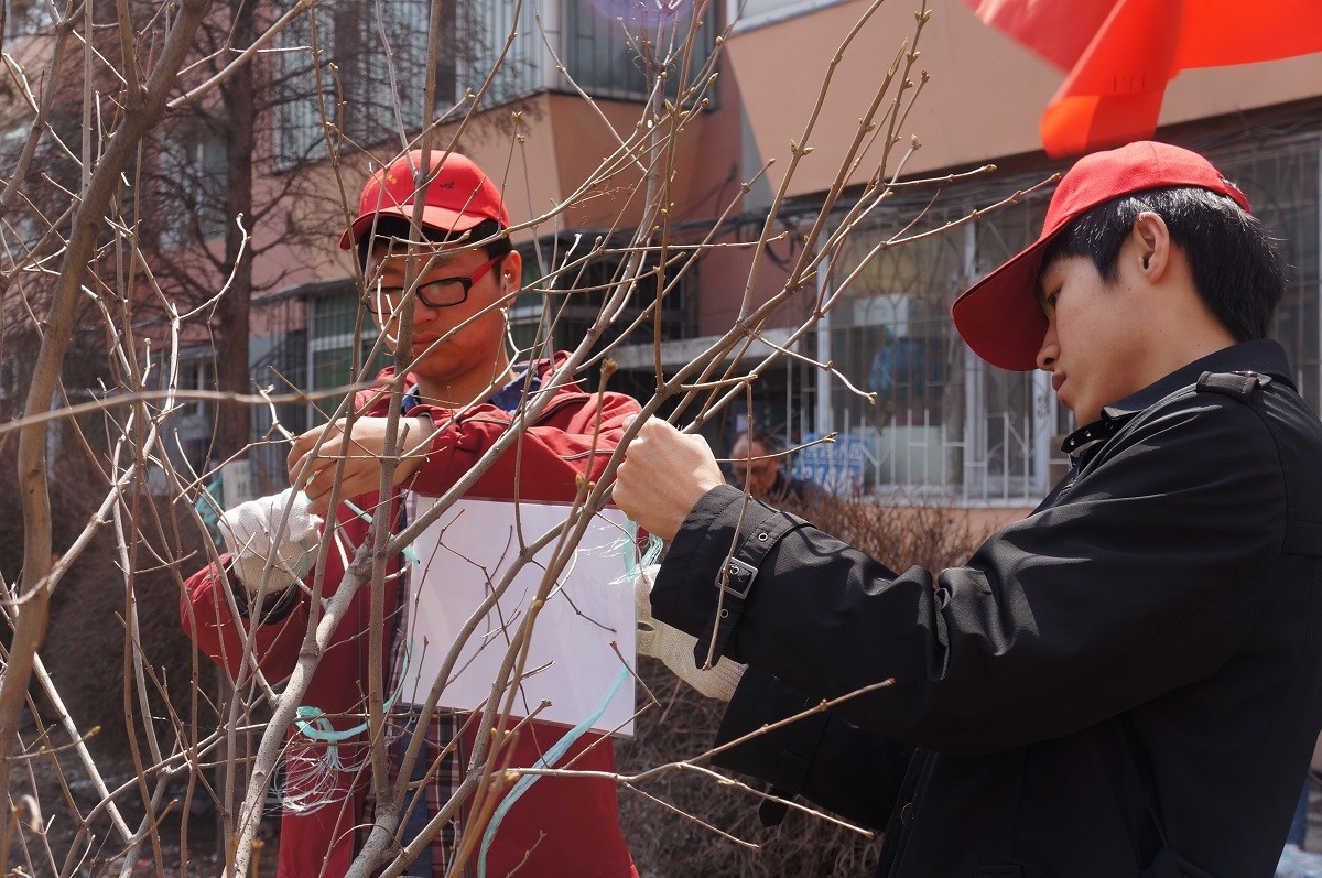 绿化带”命名,寓意为“志愿服务长青庭院”。之后,青年大学生志愿者们对绿化带进行了清理,为树木修剪枯枝。最后,他们还与庭院的楼长对接结成“联盟对子”,承诺长期对绿化带提供进行维护服务。
