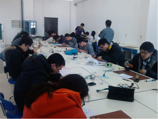 2012级学员的培训活动于李四光实验楼533室紧锣密鼓地展开了。在科协会长曹明明、副会长张发聪、胡睿帆和各部部长们的大力帮助和实验室工作人员的支持下,活动得以顺利进行。此次活动意在深化学员们的科技创新意识,提高动手实践能力,培养电子制作兴趣,更加重要的是选取能力较强的学员为科协干事,为参加我校的重要赛事——校电子大赛做准备。