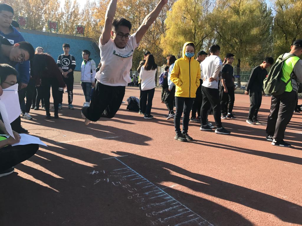 比赛前,同学们在各个领队的引领下进行签到,之后由小个协会的会长主持开幕仪式并预祝同学们取得好成绩。在进行了简短的热身活动后,体育部部长谢家运同学向2018级的同学们传授了以往的比赛经验,1:30比赛正式开始。在相对跳远比赛中,谢家运同学凭借以往的参赛经验并结合自身的优势,在试跳时就取得了2.85米的好成绩,在随后的正式起跳中,只见他调整好呼吸,全身肌肉紧绷,一跃而出,平稳落地后,经裁判员认定成绩有效,取得了2.95米的好成绩。比赛后各组领队带领参赛人员们测量身高,在短暂的统计后公布了成绩,仪电学院的同学们均有着出色的表现,在女子跳高比赛中王瑾同学取得了小组前二十的好成绩,而男子跳远比赛中谢家运同学更是在加权计算后名列小组第一,并成为了男子相对跳远比赛的纪录保持者。