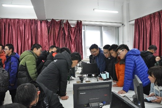 活动当天,三个学院的同学们准时在南区北门集合,伴着阵阵秋风,活动顺利开始进行。首先,负责人对活动进行了简单的学院介绍,然后,将同学们随机分成六组后,在五月花广场开始了本次活动的第一个游戏——人多足少。这个游戏考验了同学们的体力、耐力以及组织配合的能力。在欢声笑语中,同学们消除了彼此的陌生感。接下来,一行人来到李四光实验楼,开始参观447实验室。组织培训部副部向参加联谊活动的同学们讲解了有关机器人的简单知识,并向大家展示了一些优秀的电子设计大赛作品。同学们认真听讲,掌声不断,并且提出了很多有趣的问题,大家对机器人技术产生了浓厚的兴趣。离开447实验室后,同学们一起来到鼎新楼,参观成人网址