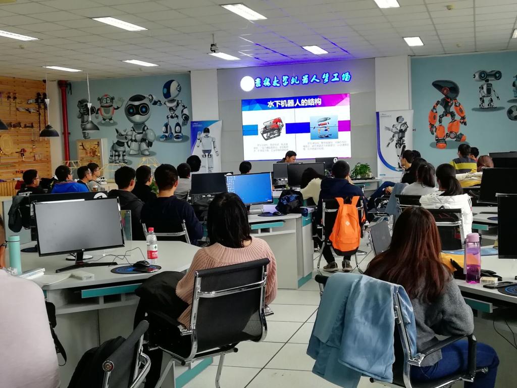 大学生科技创新协会于2018年11月11日下午1:30在李四光楼501举行了助老服务、水中机器人入门引导课。引导课由陈金龙同学、王浩帆同学、陈冠桥同学以及付强同学主讲,千承辉老师也在百忙之中来到了课堂,为同学们排忧解惑。对机器人感兴趣的仪电学子参与了本次引导课。
