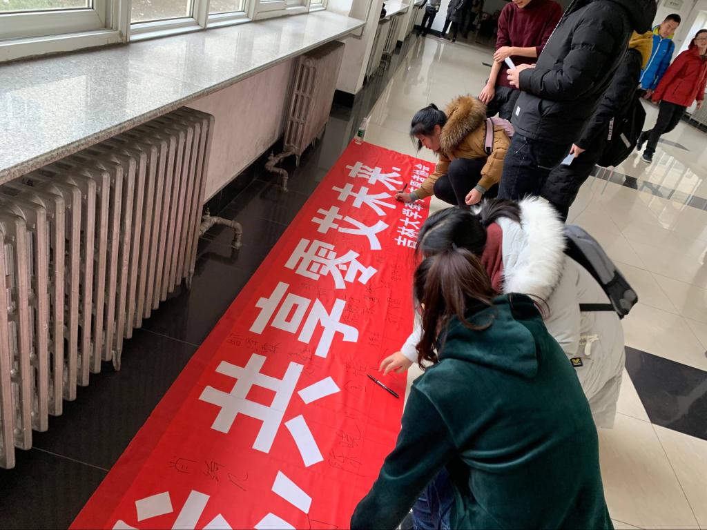 志愿者们于上午8:30到达经信教学楼,提前做好活动准备。上午9:00活动正式开始。志愿者们首先进行了艾滋病防治知识宣传,为参与者讲解防治艾滋病的相关知识,让更多的大学生能够正确认识艾滋病。随后引导他们在印有“提笔留名,共担防艾责任,牵手你我,共享零艾未来”的条幅上签名。在志愿者的引领下,参与者通过说出防治艾滋病倡议文字并录制短视频的形式号召大家参与到艾滋病防治宣传活动中。最后进行了艾滋病相关问题的问答活动,志愿者在题库中随机抽取题目发问,参与者按照题目要求进行作答,利用此环节进一步向参与者科普艾滋病的相关知识。志愿者们还赠与了参与者成人网址